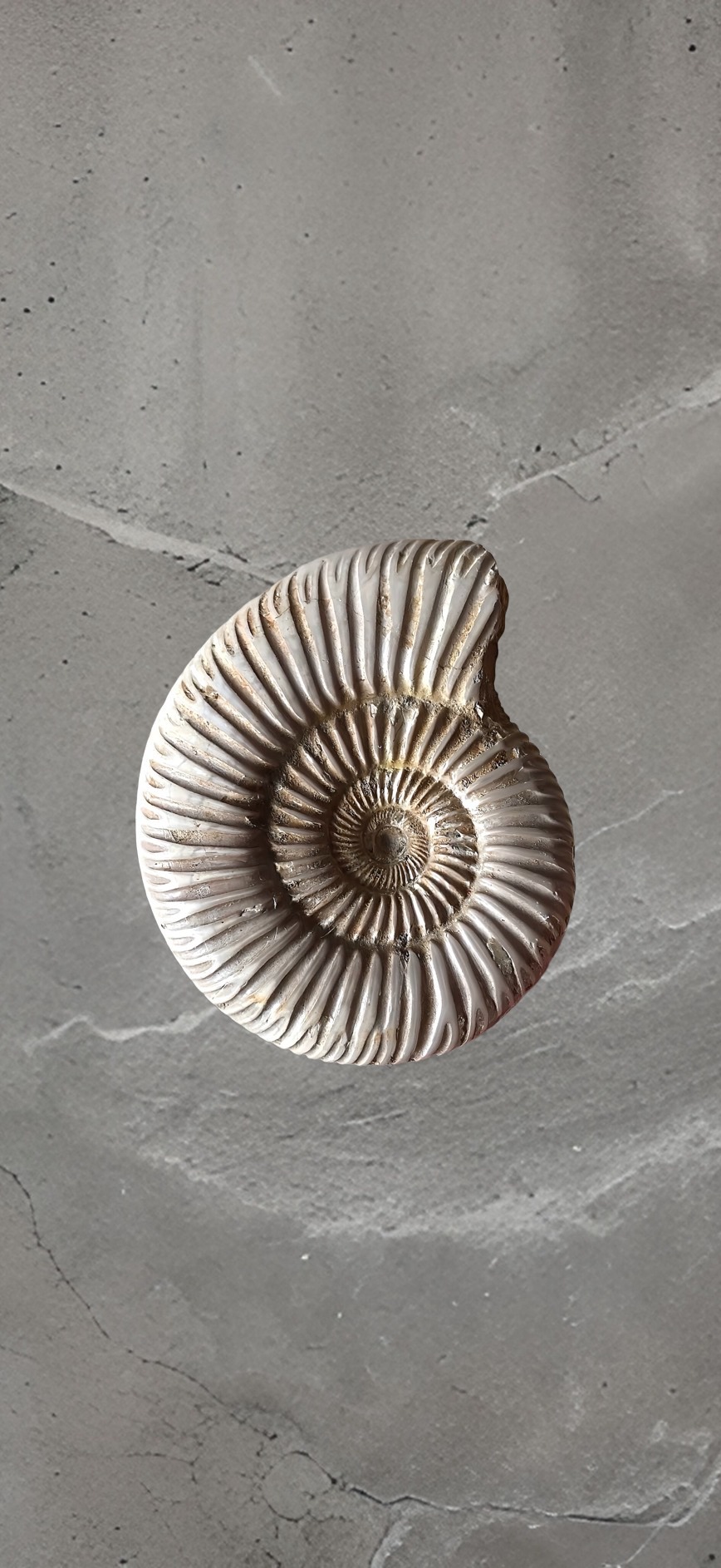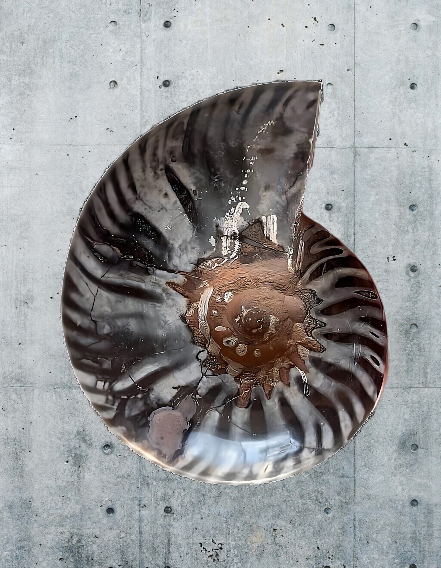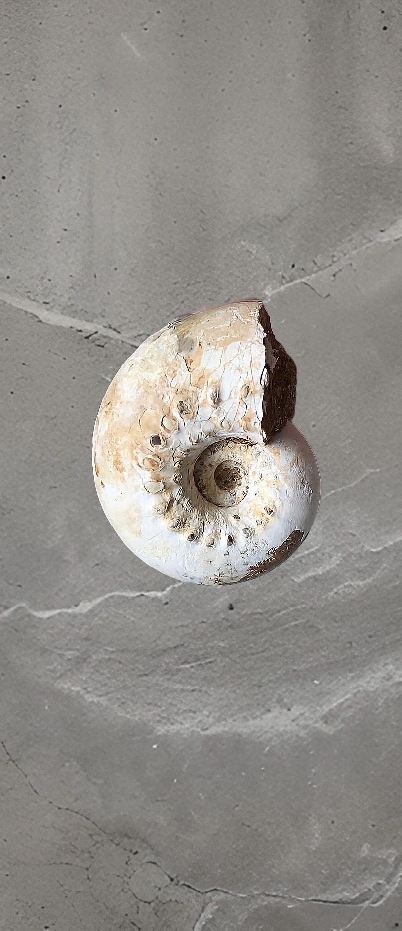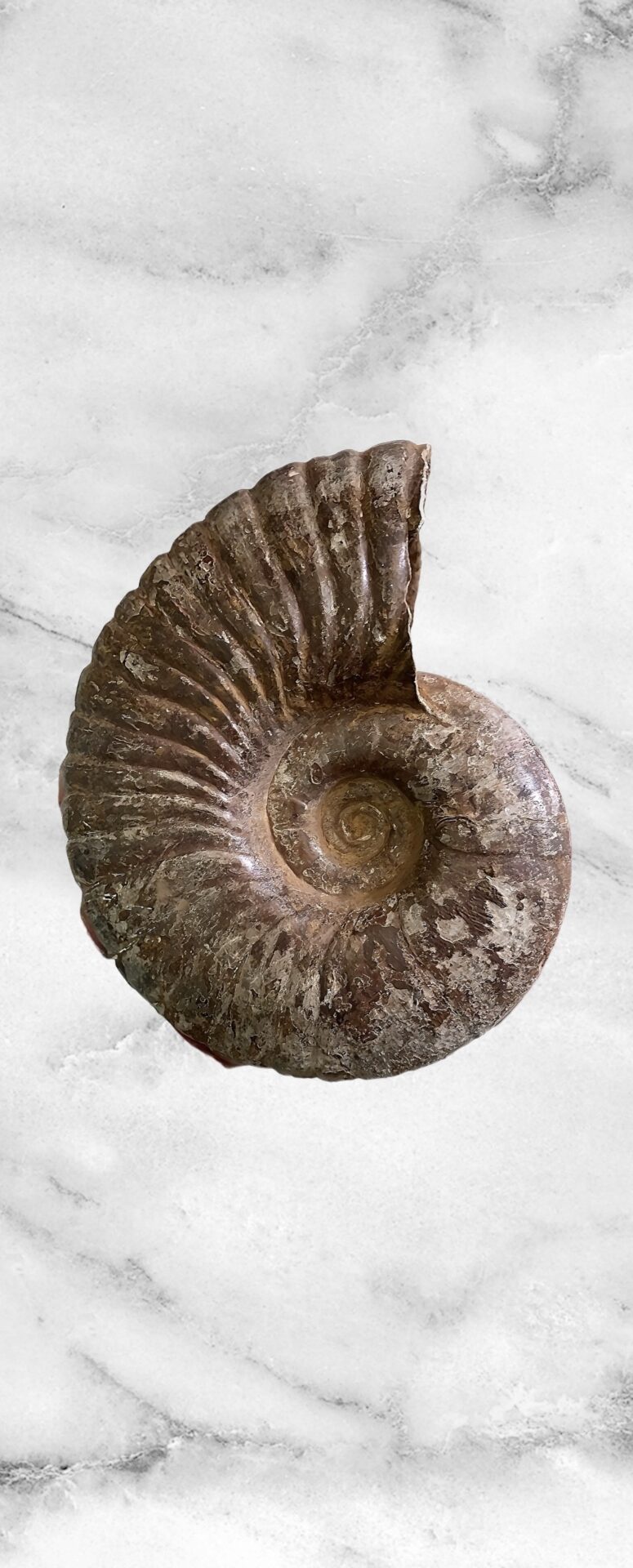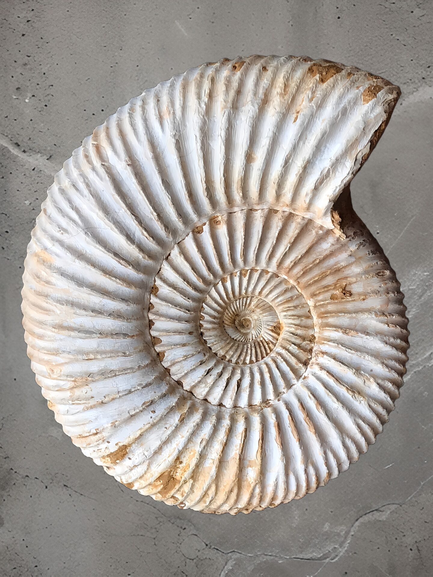 マダガスカル産 褐色アンモナイト-白ペリスフィンクテス 研磨中個体
