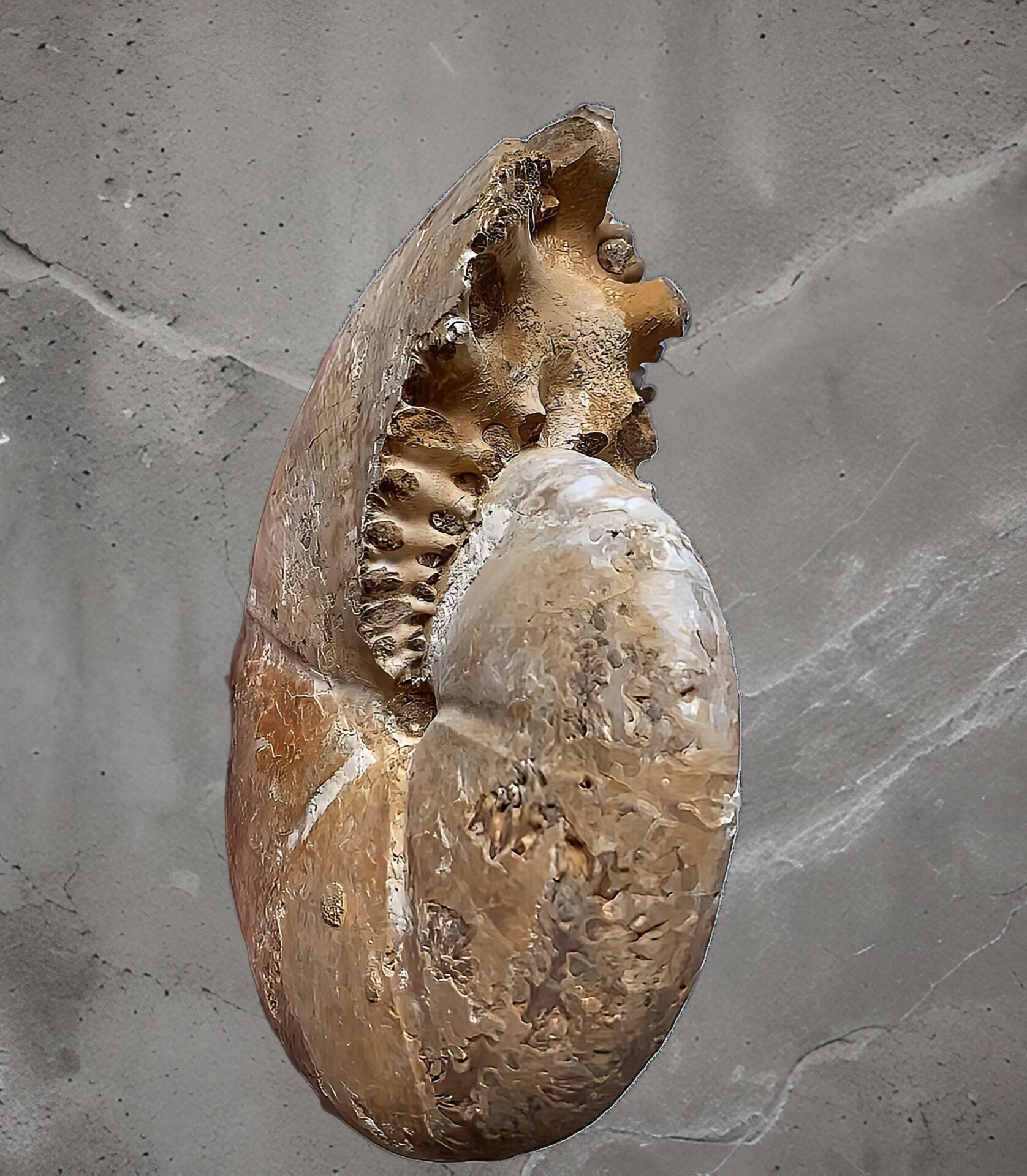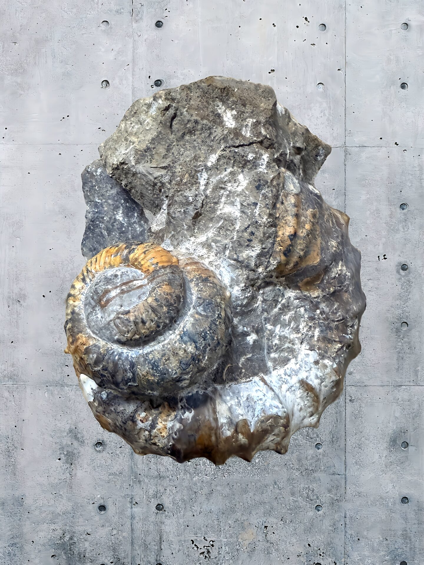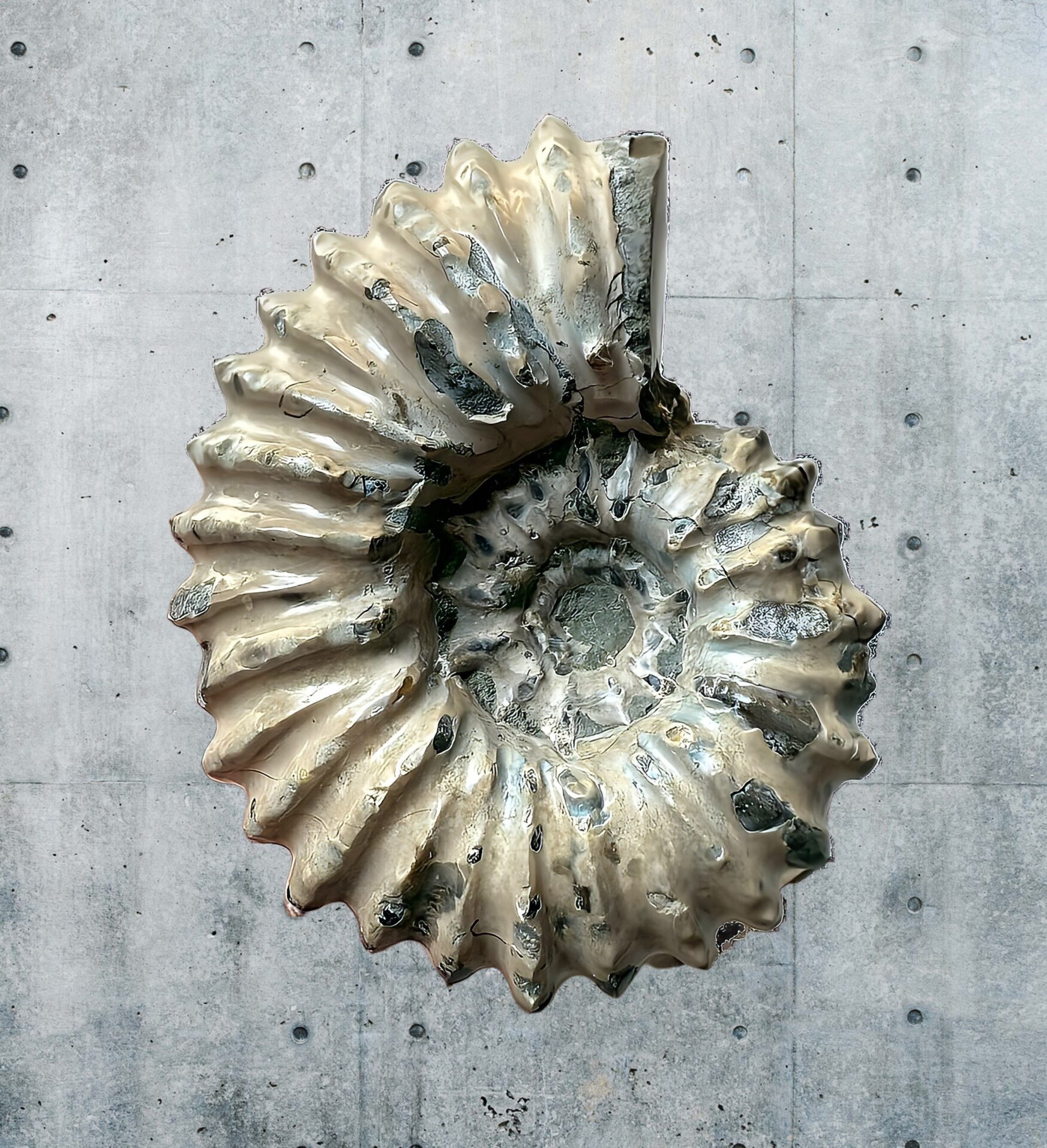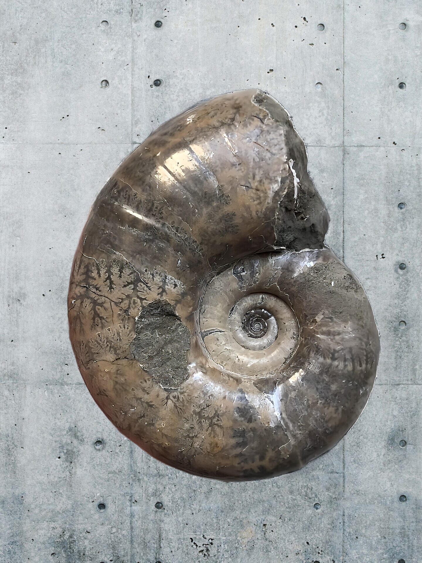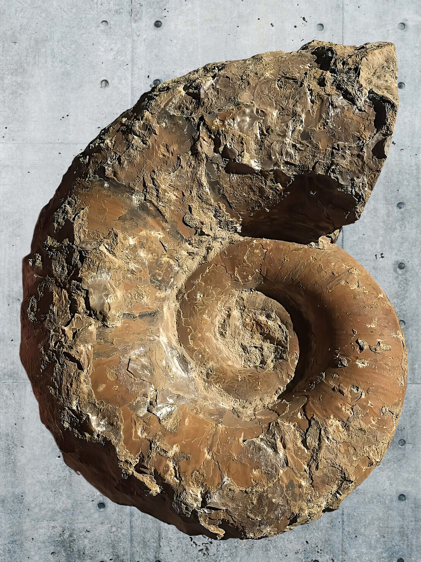 マダガスカル産 褐色アンモナイト-白ペリスフィンクテス 研磨中個体