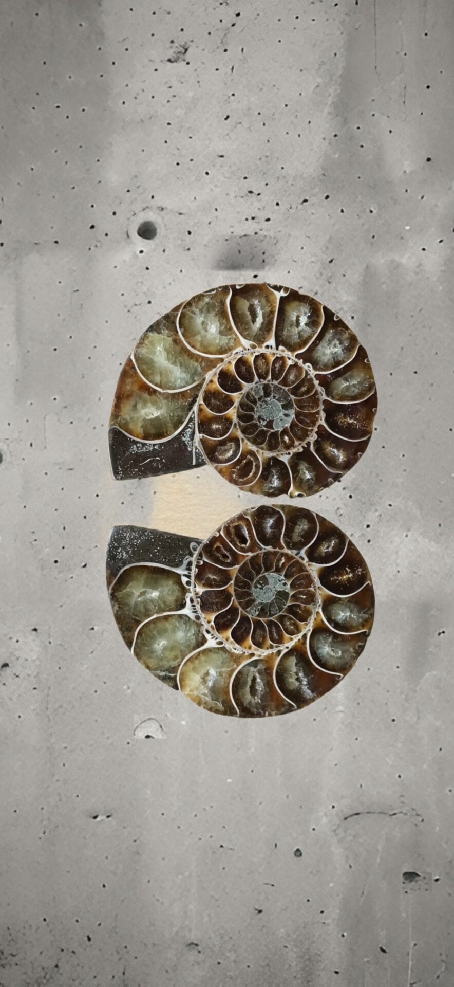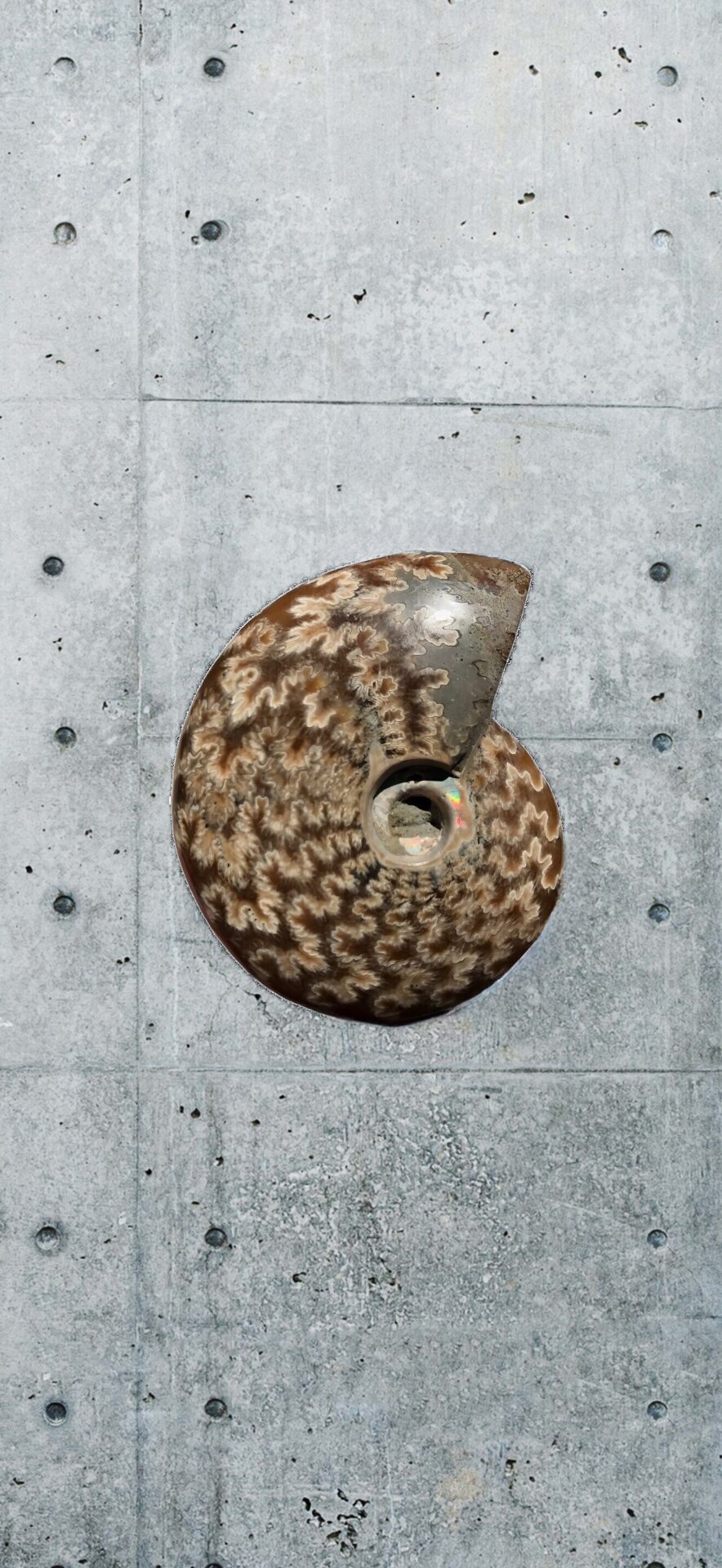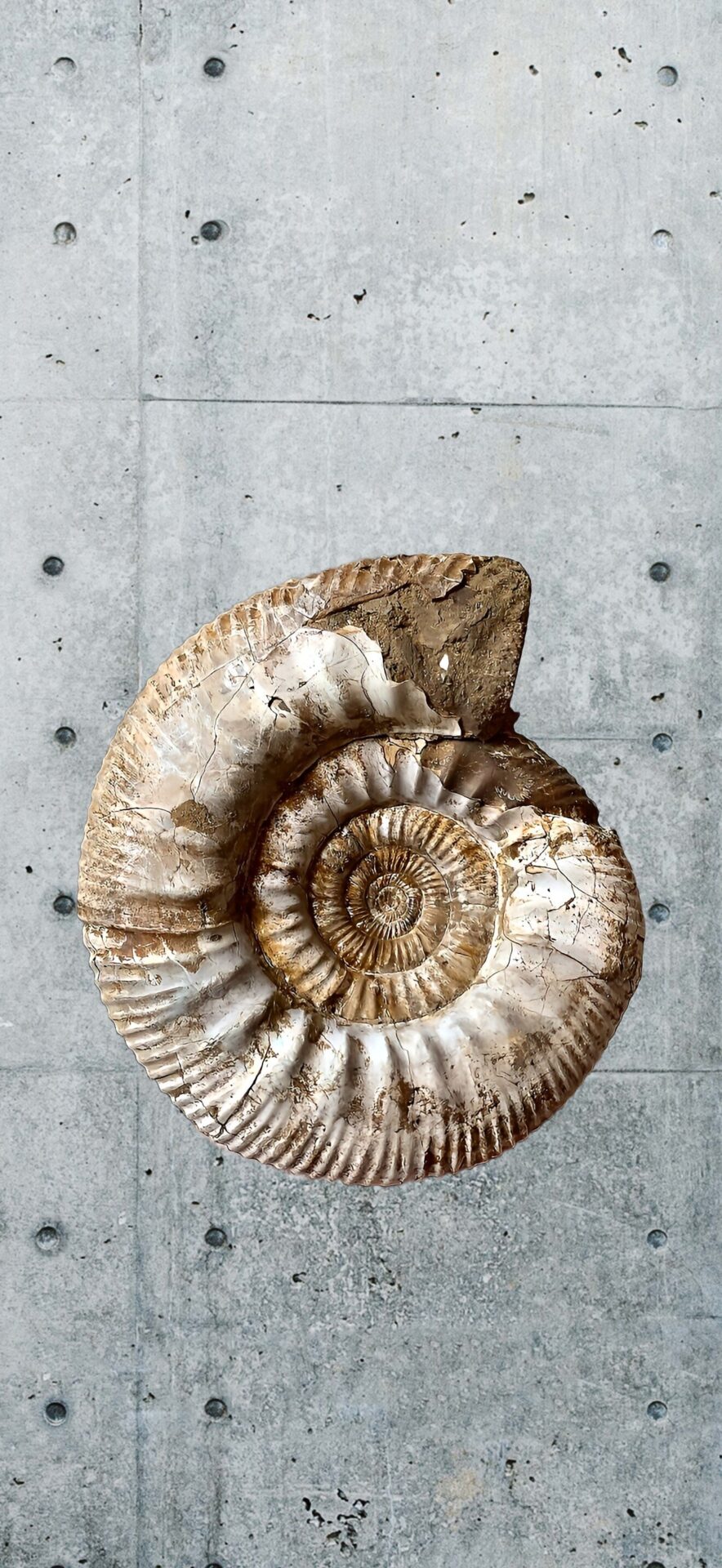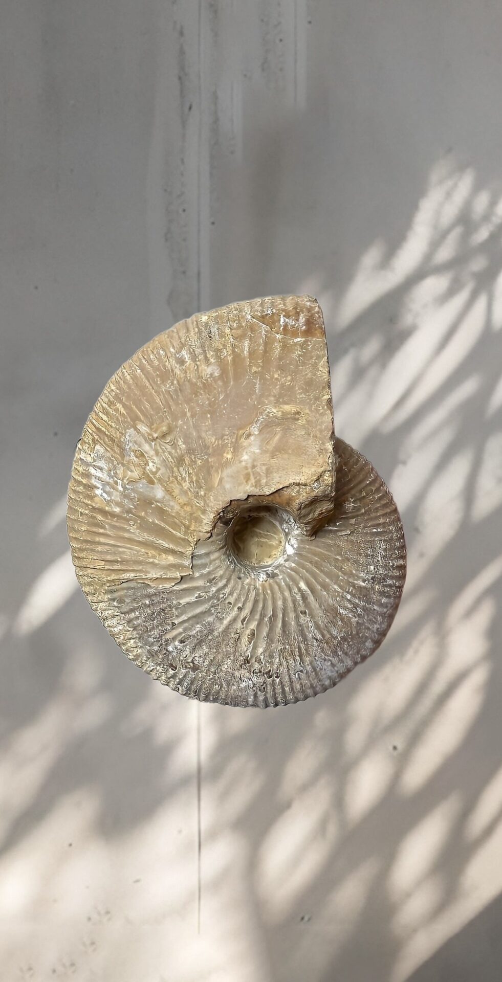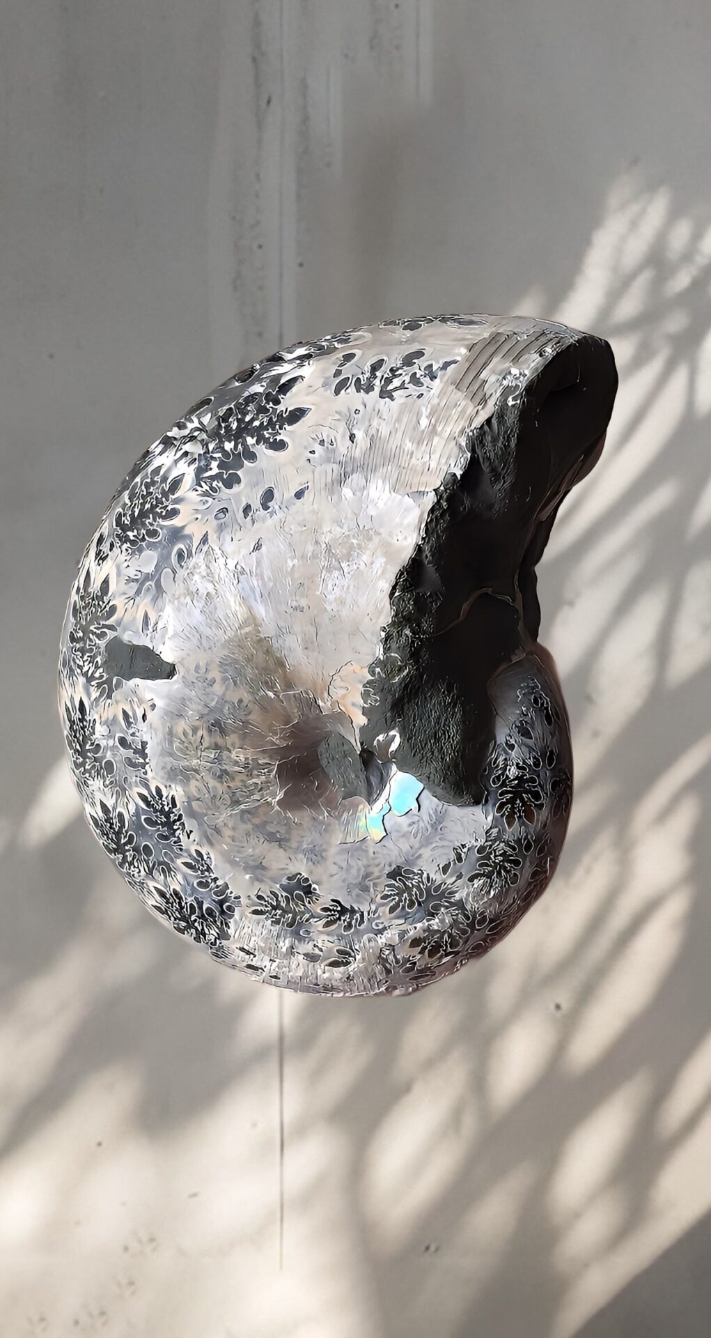 マダガスカル産 褐色アンモナイト-白ペリスフィンクテス 研磨中個体