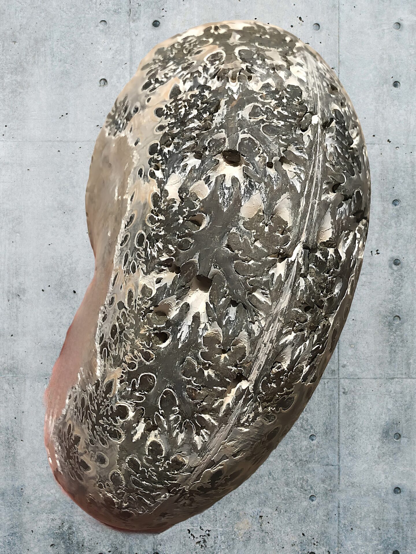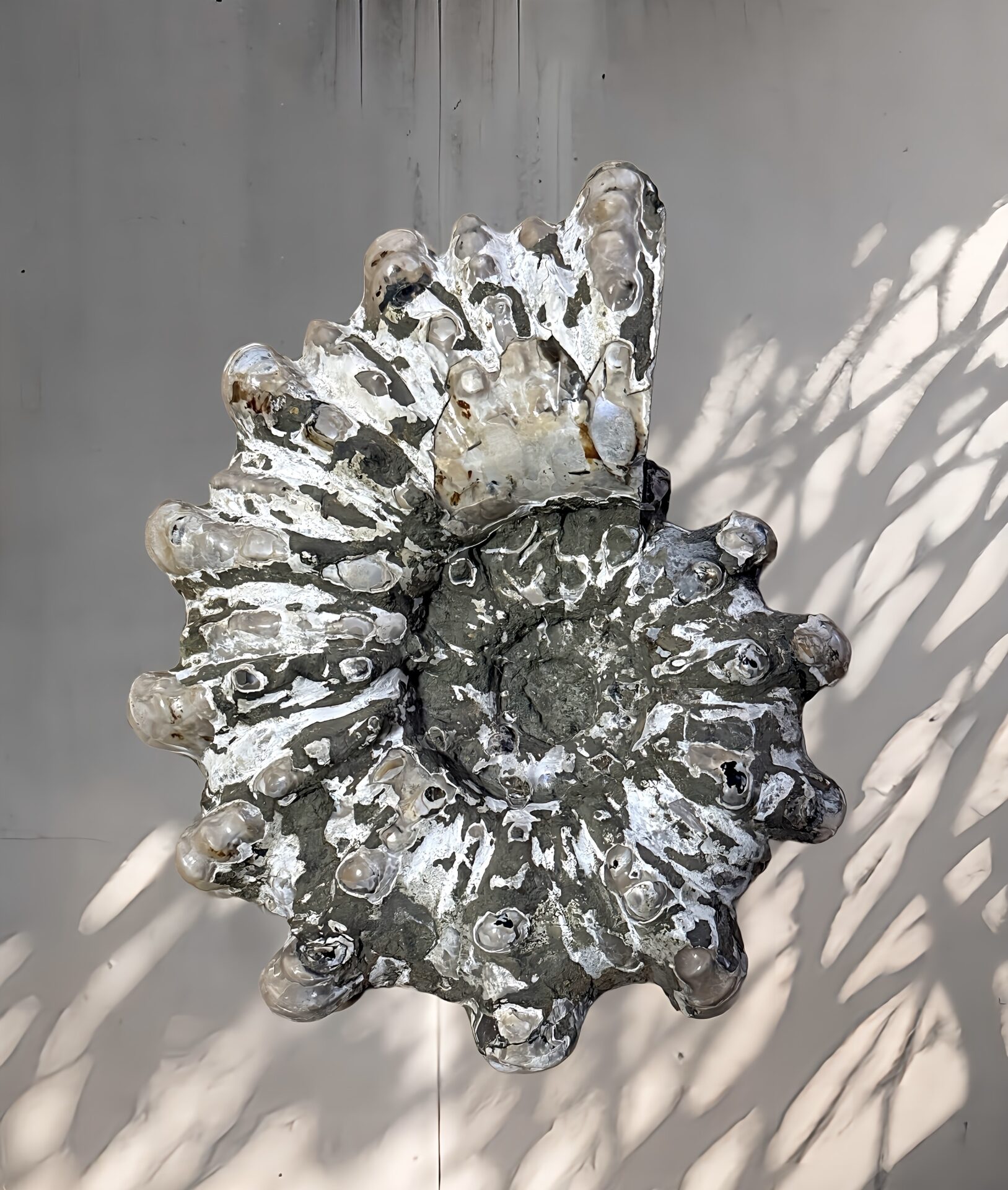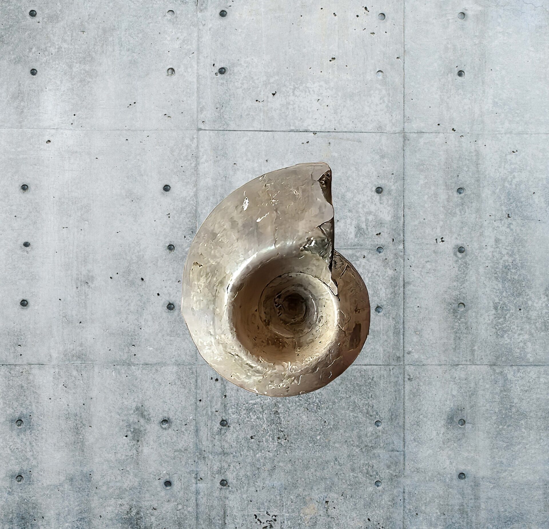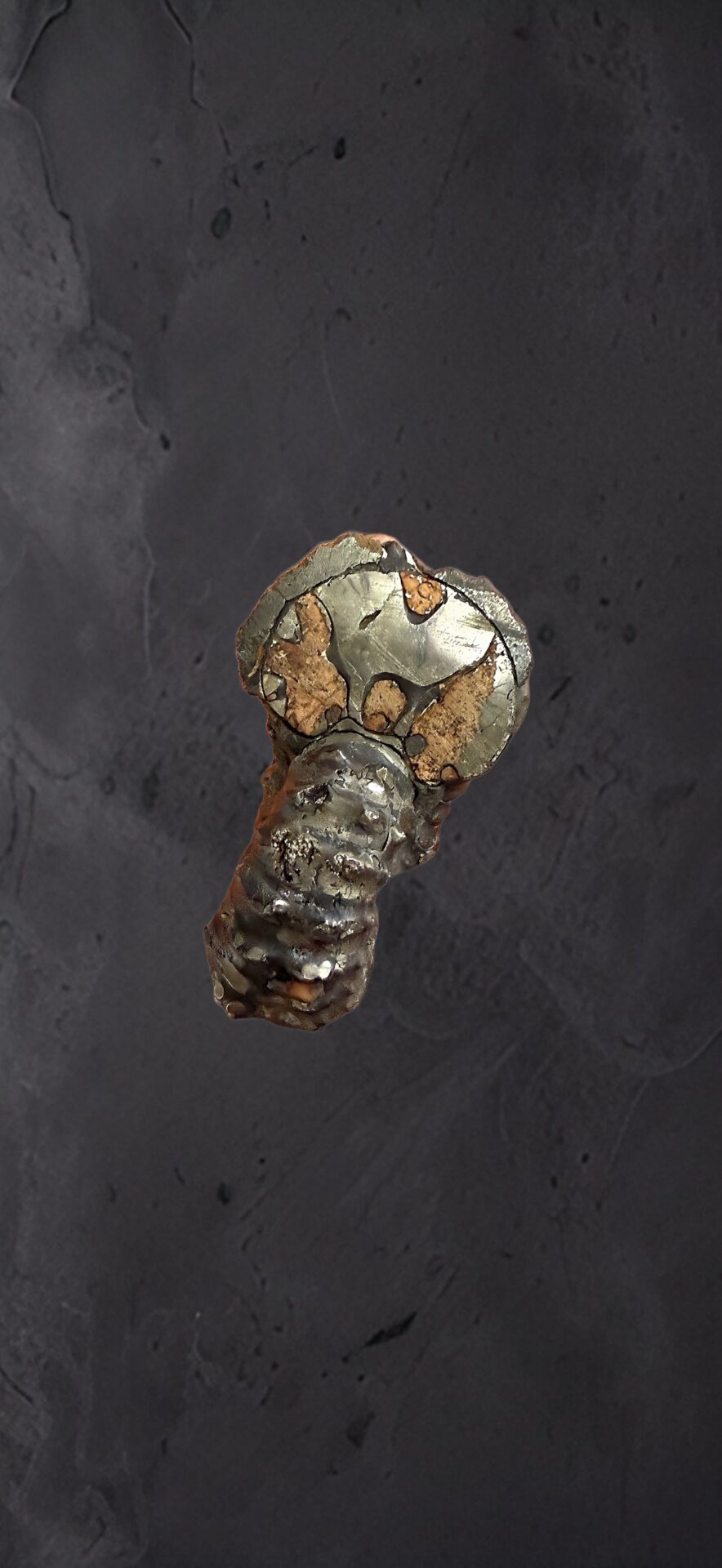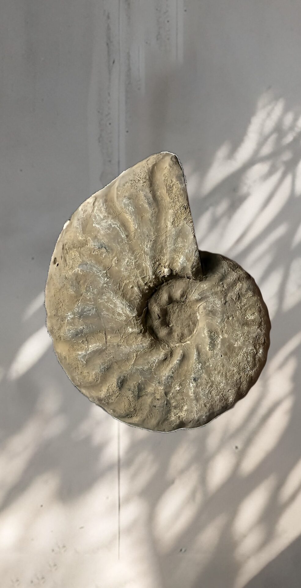 マダガスカル産 褐色アンモナイト-白ペリスフィンクテス 研磨中個体