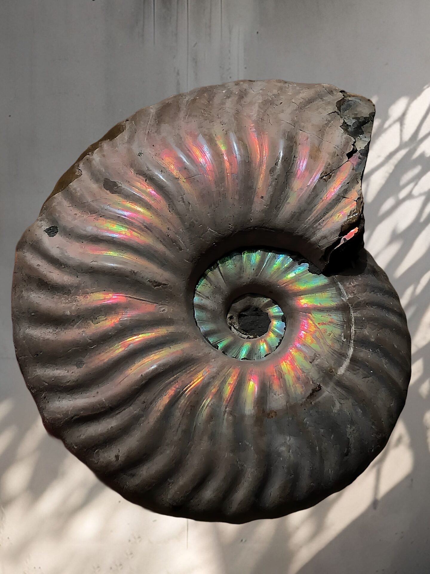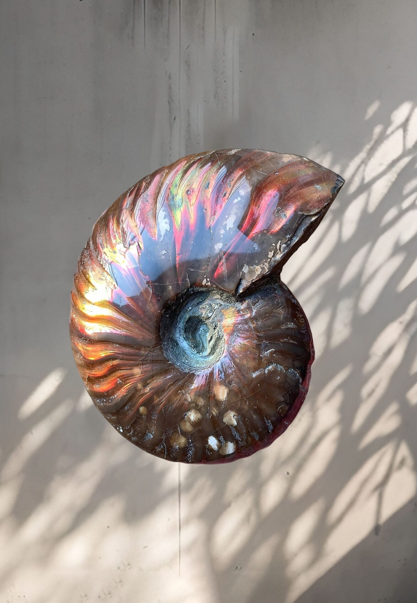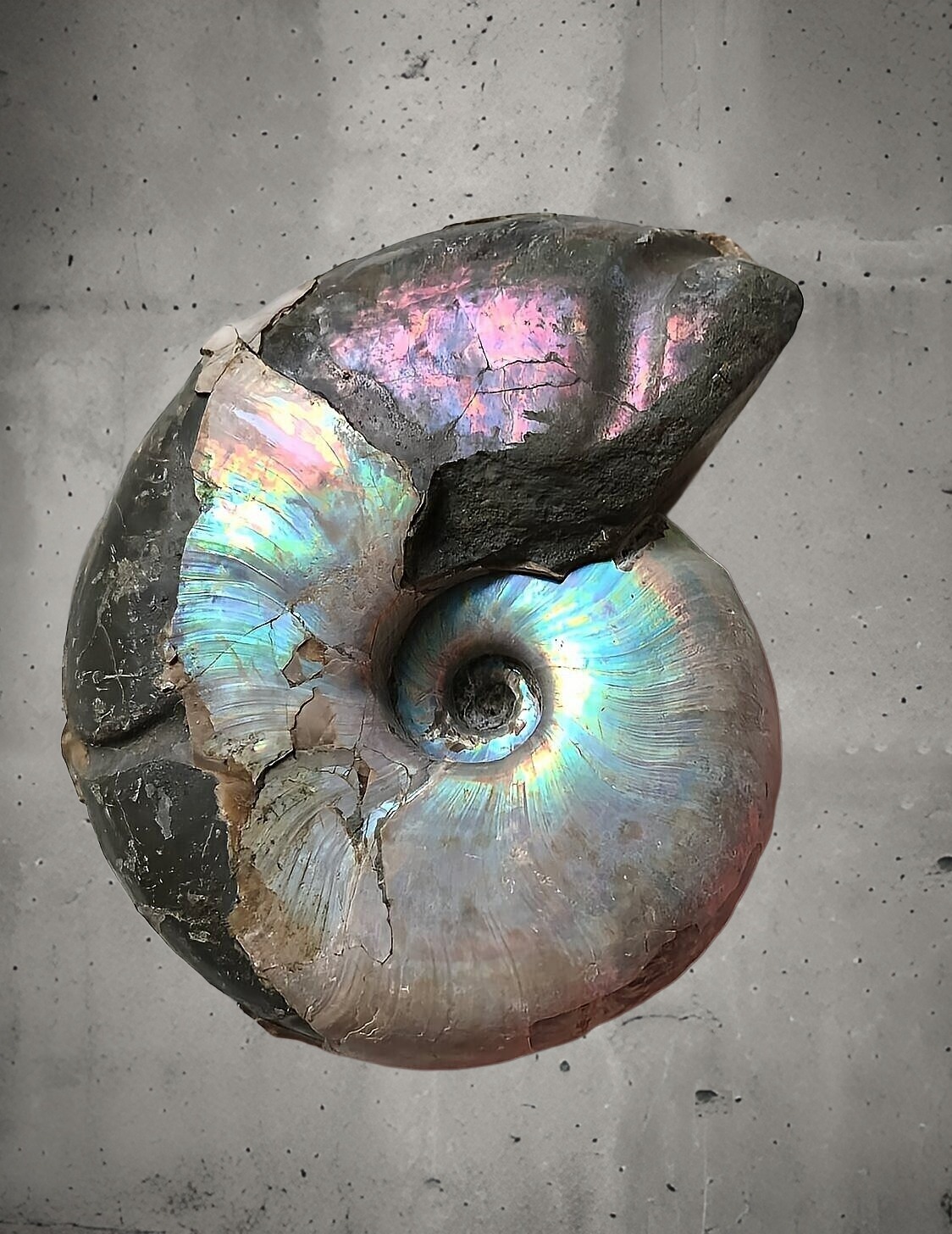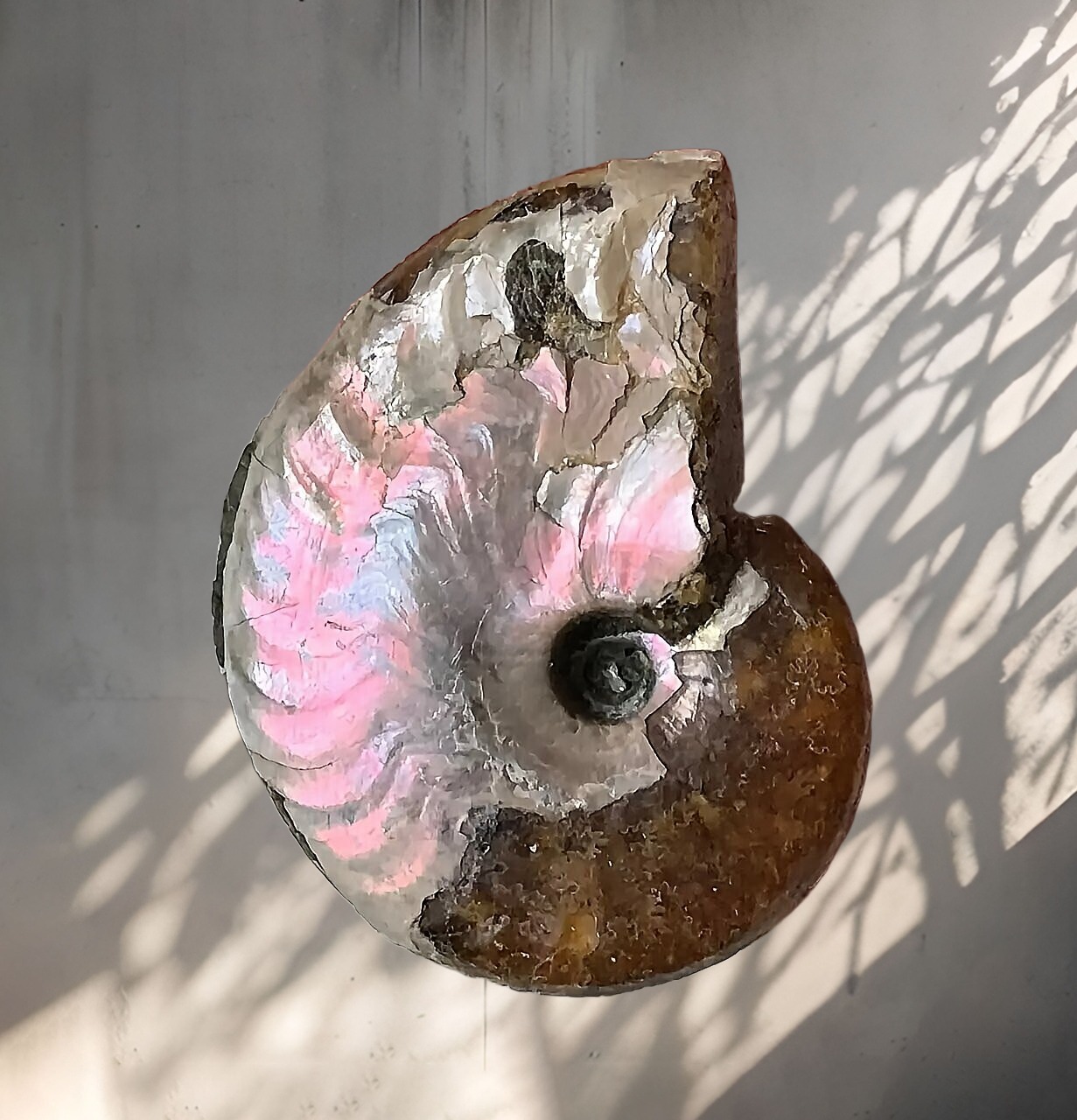 マダガスカル産 遊色虹色アンモナイトピンク(クレオニラス)桃紫黄発色 巨大個体