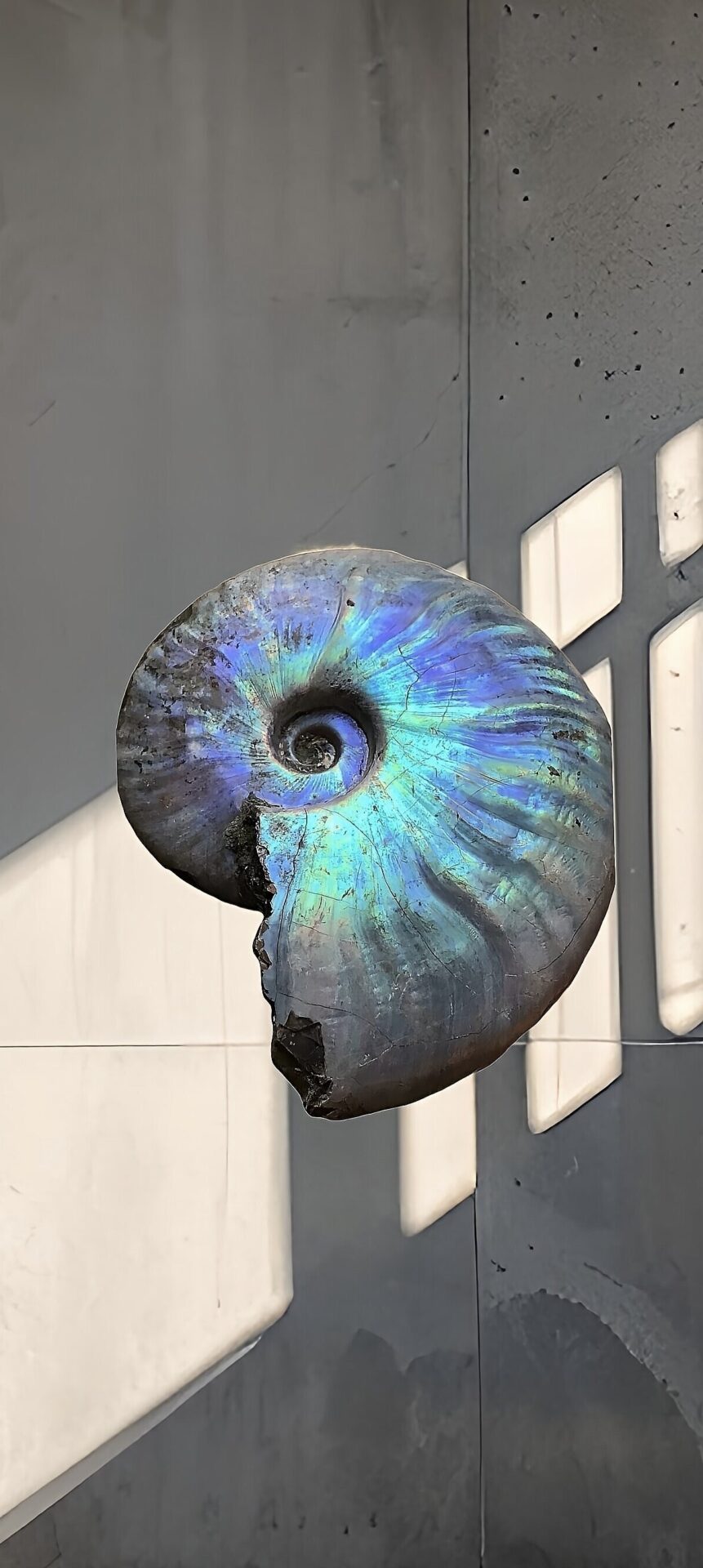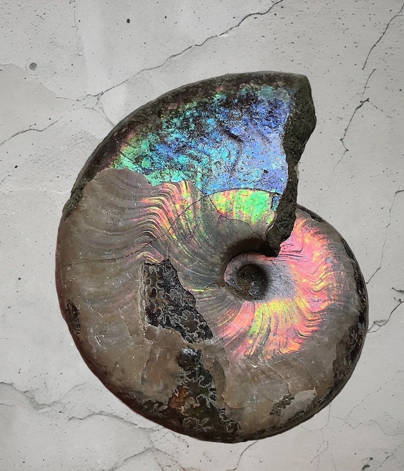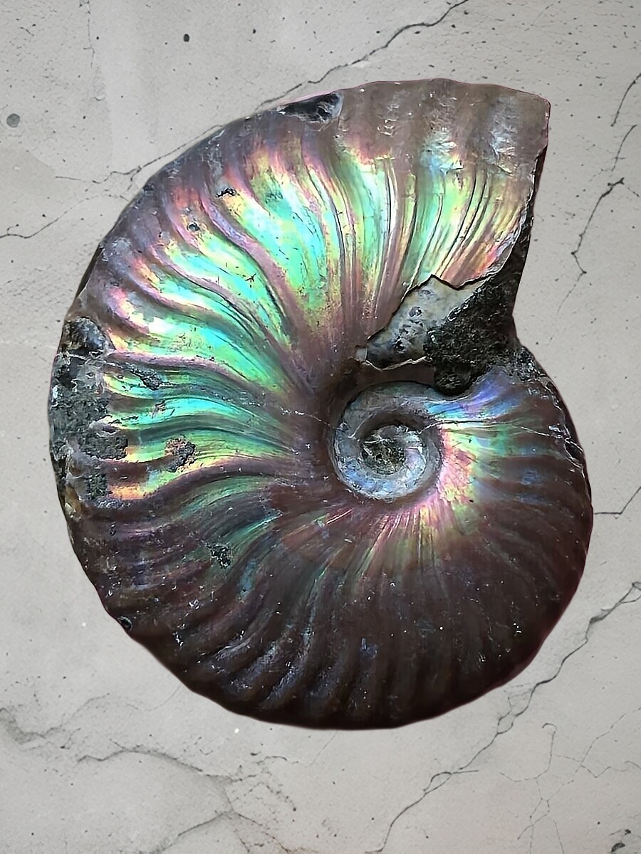 マダガスカル産 青黄色遊色デスモセラス アンモナイト 中個体
