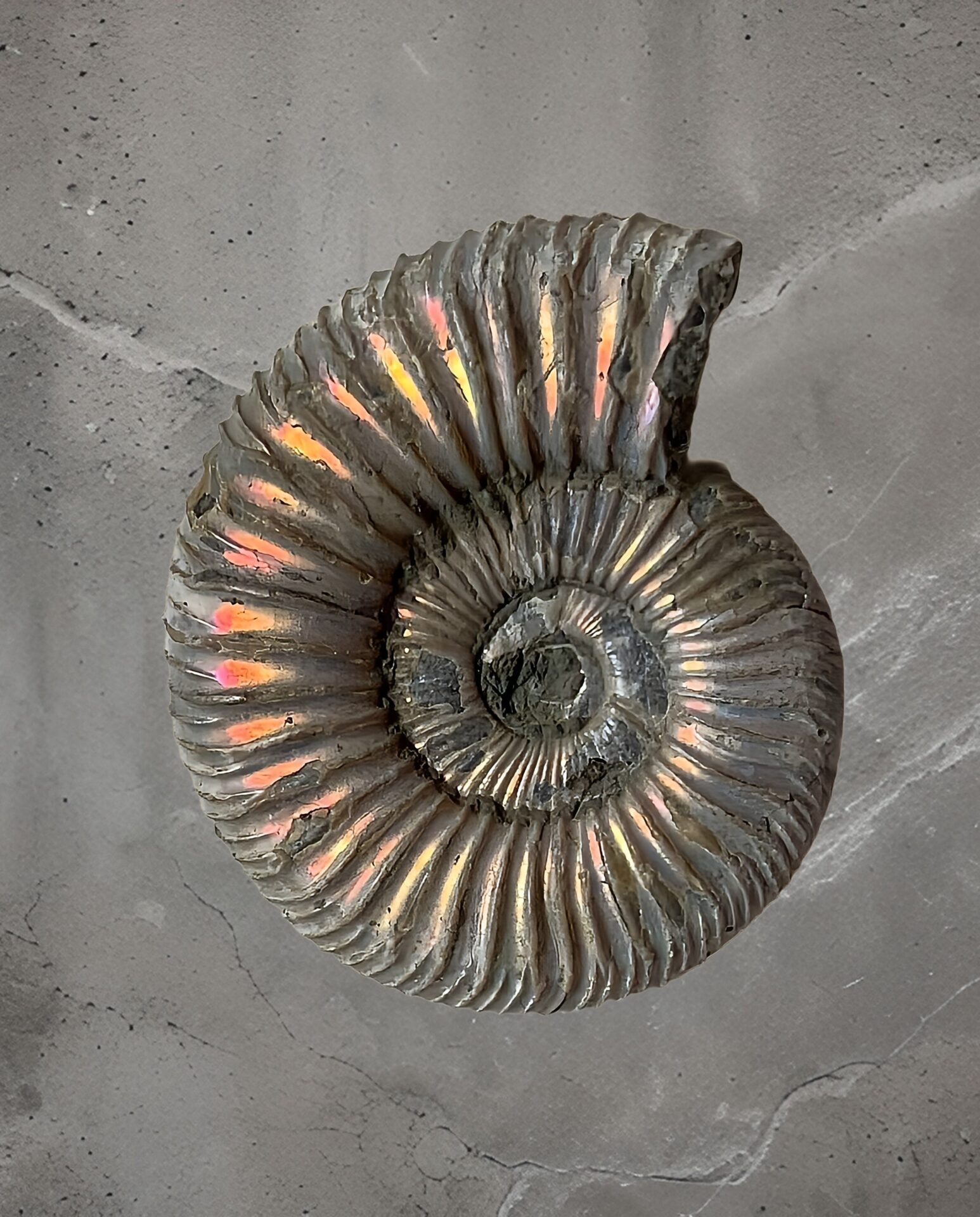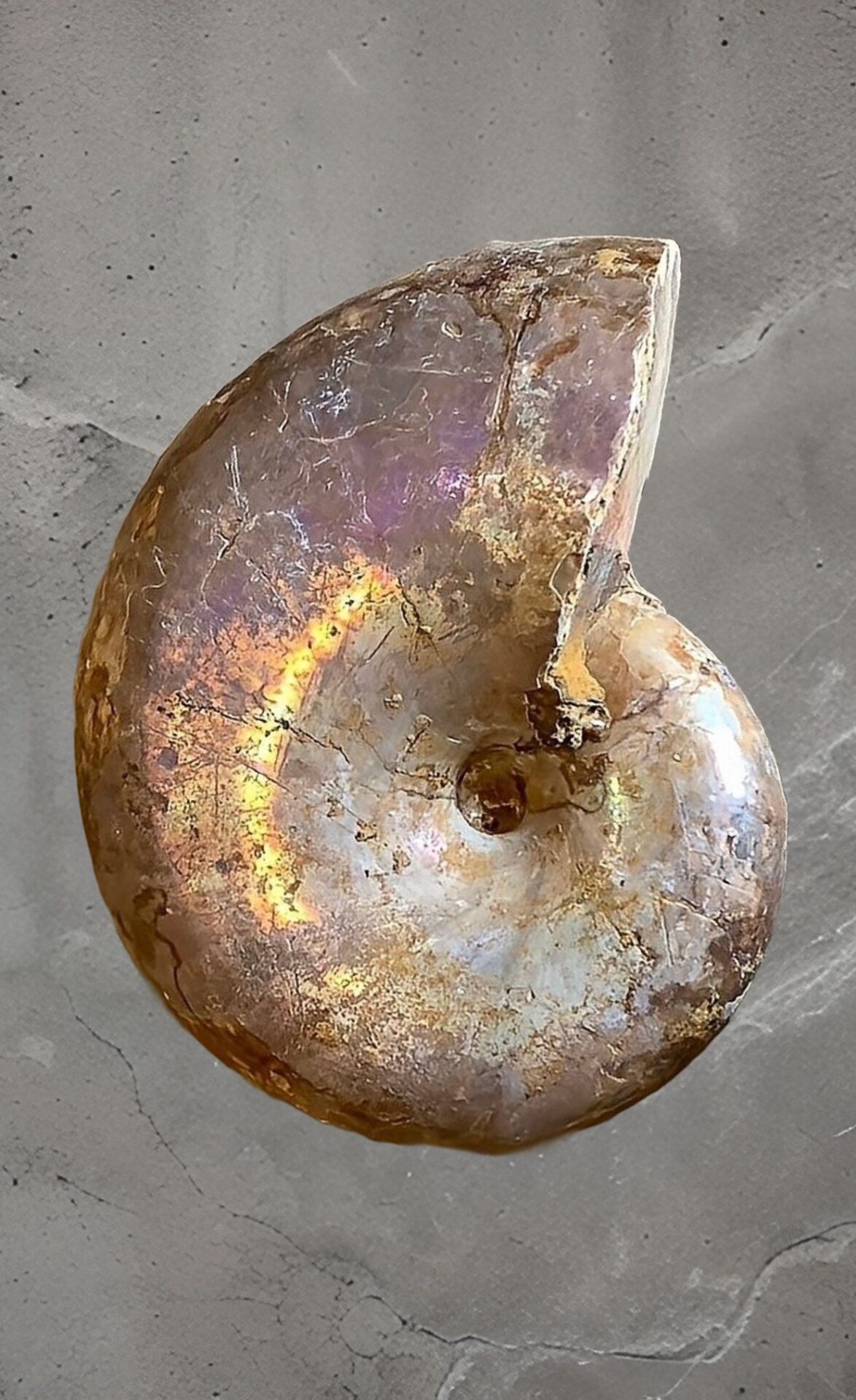 マダガスカル産 遊色虹色アンモナイトピンク(クレオニラス)桃紫黄発色 中サイズ個体