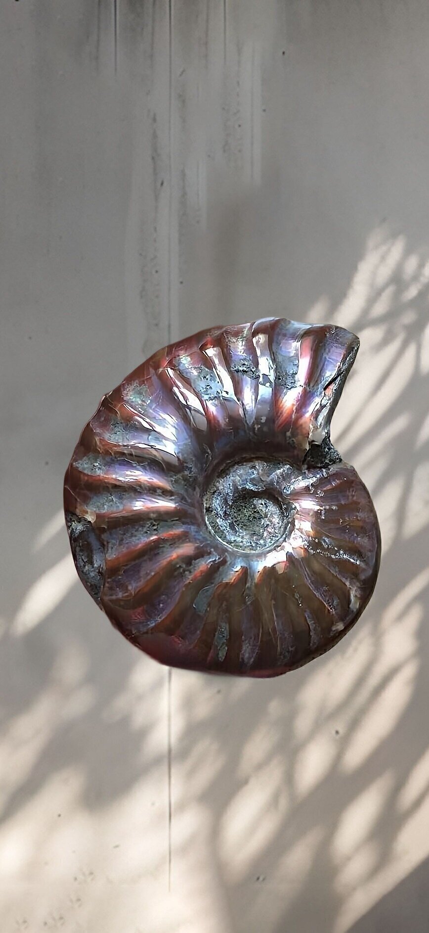 マダガスカル産直輸入 アンモナイト化石 プゾシア青赤混合遊色稀少個体