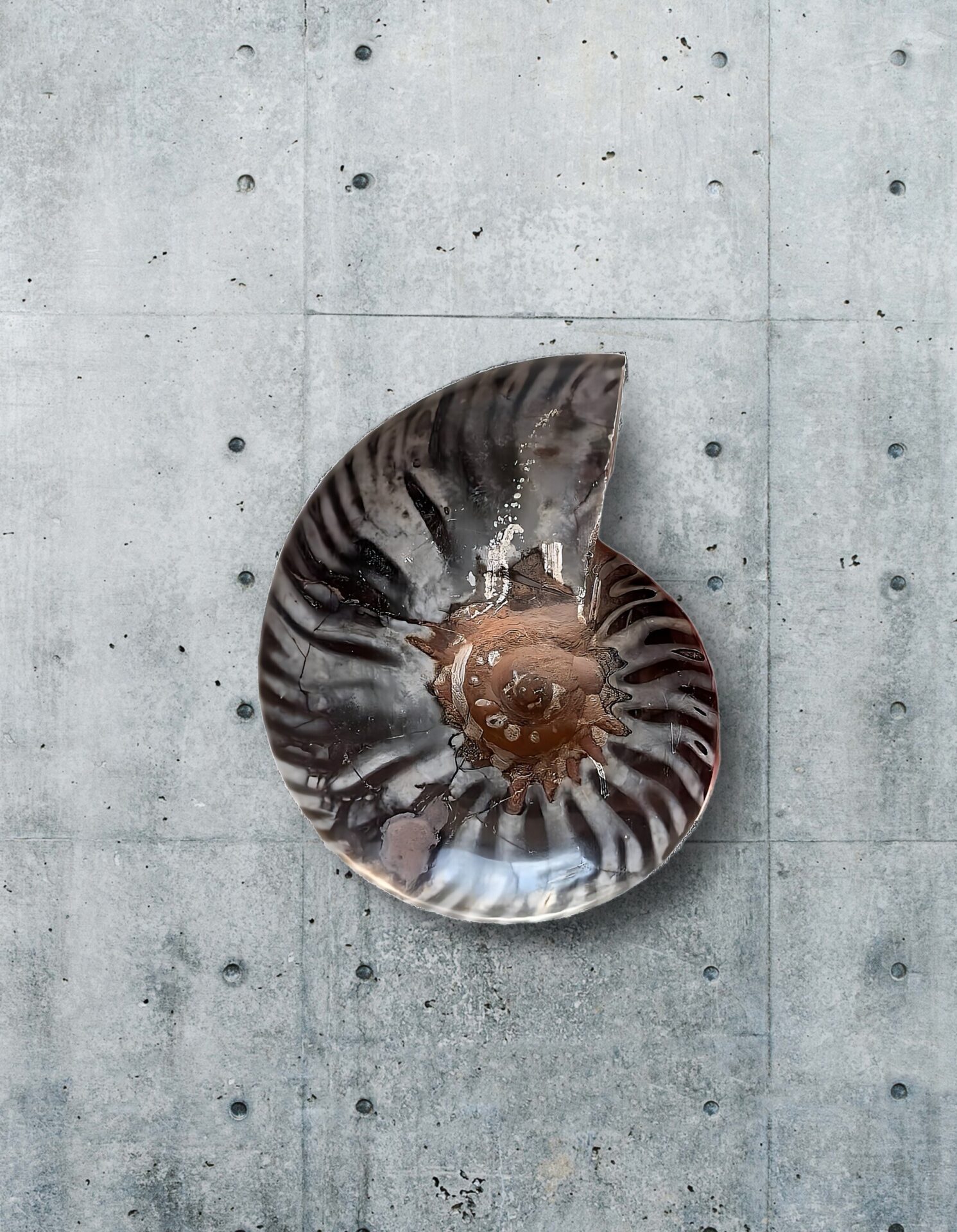 マダガスカル産 アンモナイト化石青(デスモセラス)裁断 スライス 黄鉄鉱(パイライト)含有