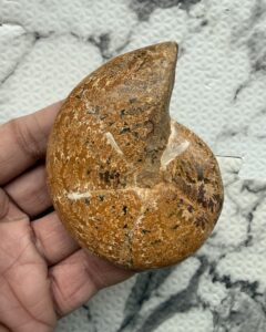 マダガスカル チュレア産 橙色縫合線アンモナイト-カリフィロセラス 格安 116g 8.0cm、1円スタート 中サイズ 研磨済