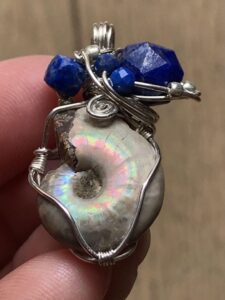 コメント:小さくてかわいらしいレインボーカラーのアンモナイトの素晴らしい銀線細工のペンダントヘッドです。大変お忙しい中、非常に迅速で大変丁寧なご対応とご発送、誠にありがとうございました。
