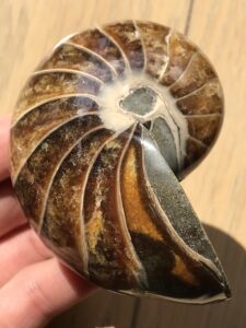 マダガスカル産オウムガイノーチラス・アンモナイト化石約8.2cm 重量255g 研磨個体