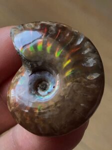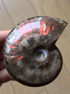 コメント:本日、二つアンモナイトが届きました。赤色のは少し前評価を送信。赤色より、少し大きないろんな色が神秘的なアンモナイト、大切にします。この度はたいへんにありがとうございました。ハガキ、メッセージも感謝!!!