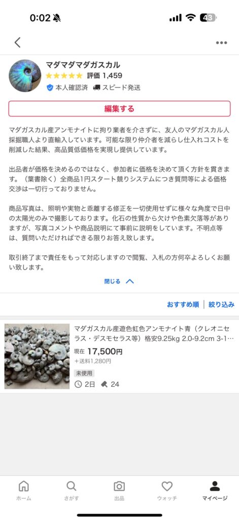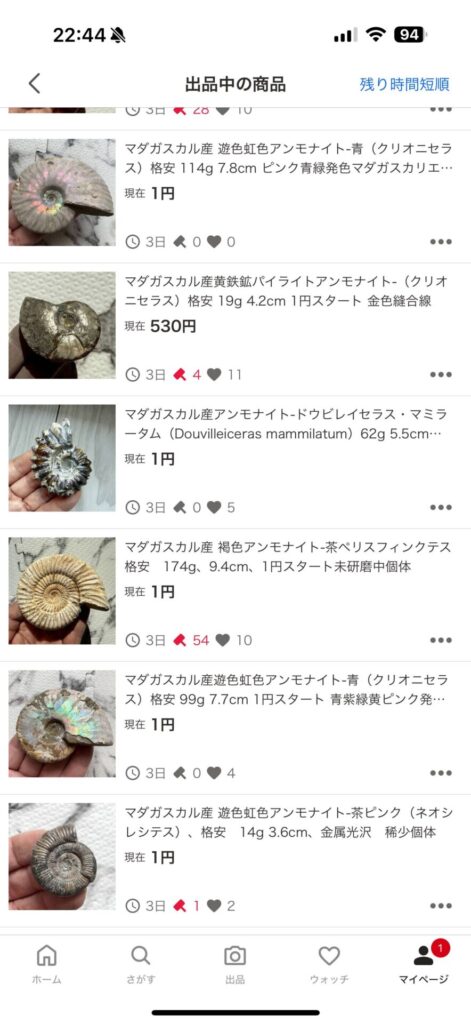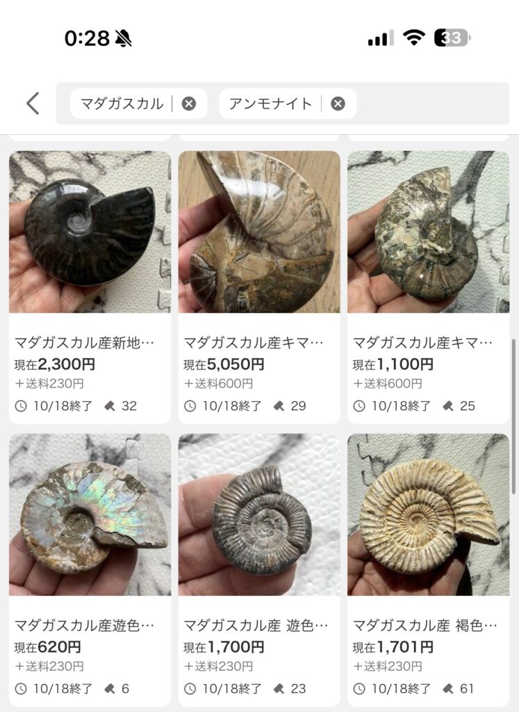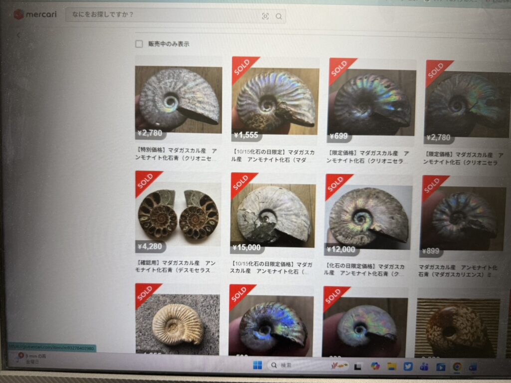 メルカリではなぜかチュレア産アンモナイトや黒アンモナイトの需要がヤフーオークションに比べて少ないのもサイトの特徴です。