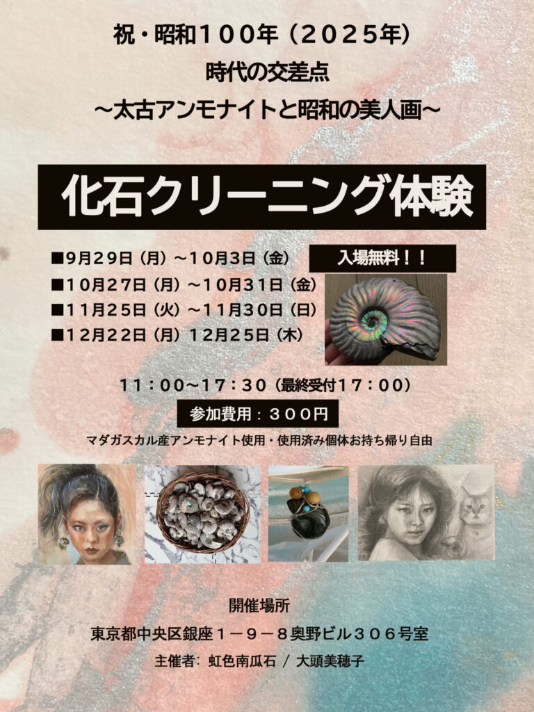 アンモナイトのクリーニング体験及び展示即売は維持しつつも、持参する個体を販売用だけでなく展示サンプル巨大個体を混ぜて会場を活用する試みを検討する必要があります。