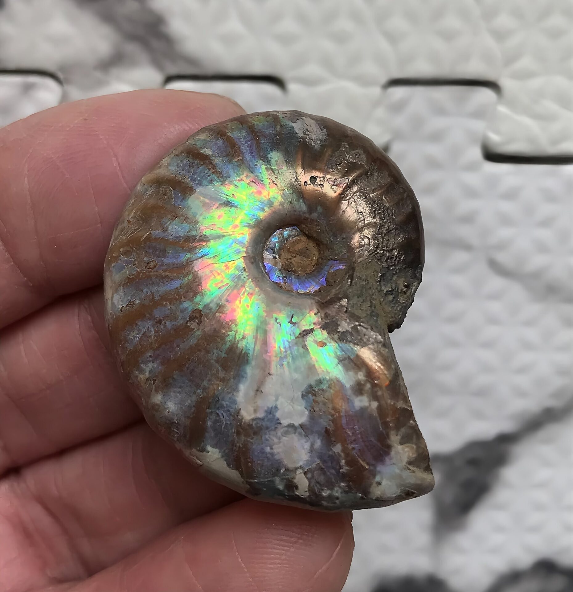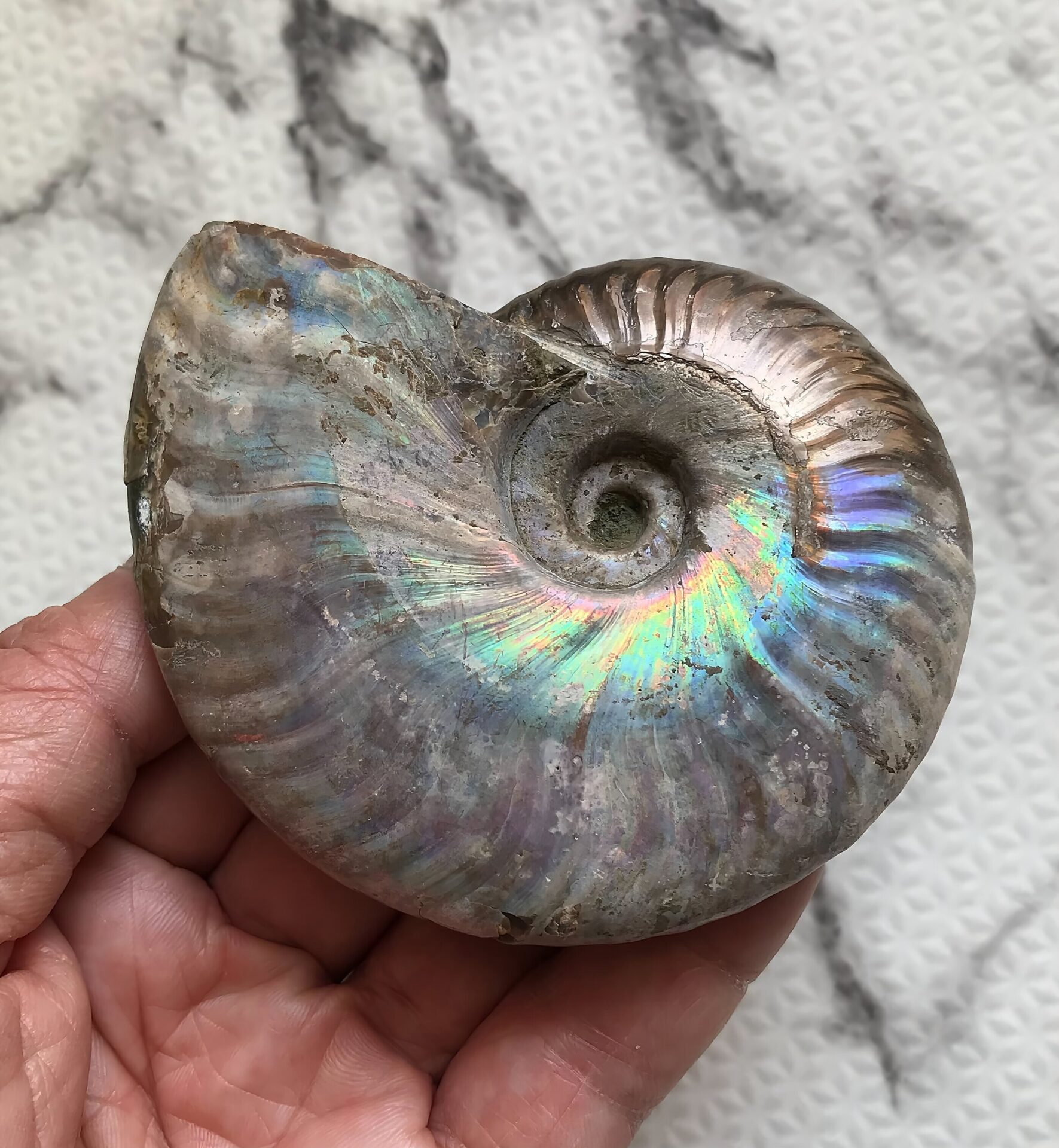 マダガスカル産 遊色虹色アンモナイト青(クレオニセラス)青紫緑発色 中サイズ