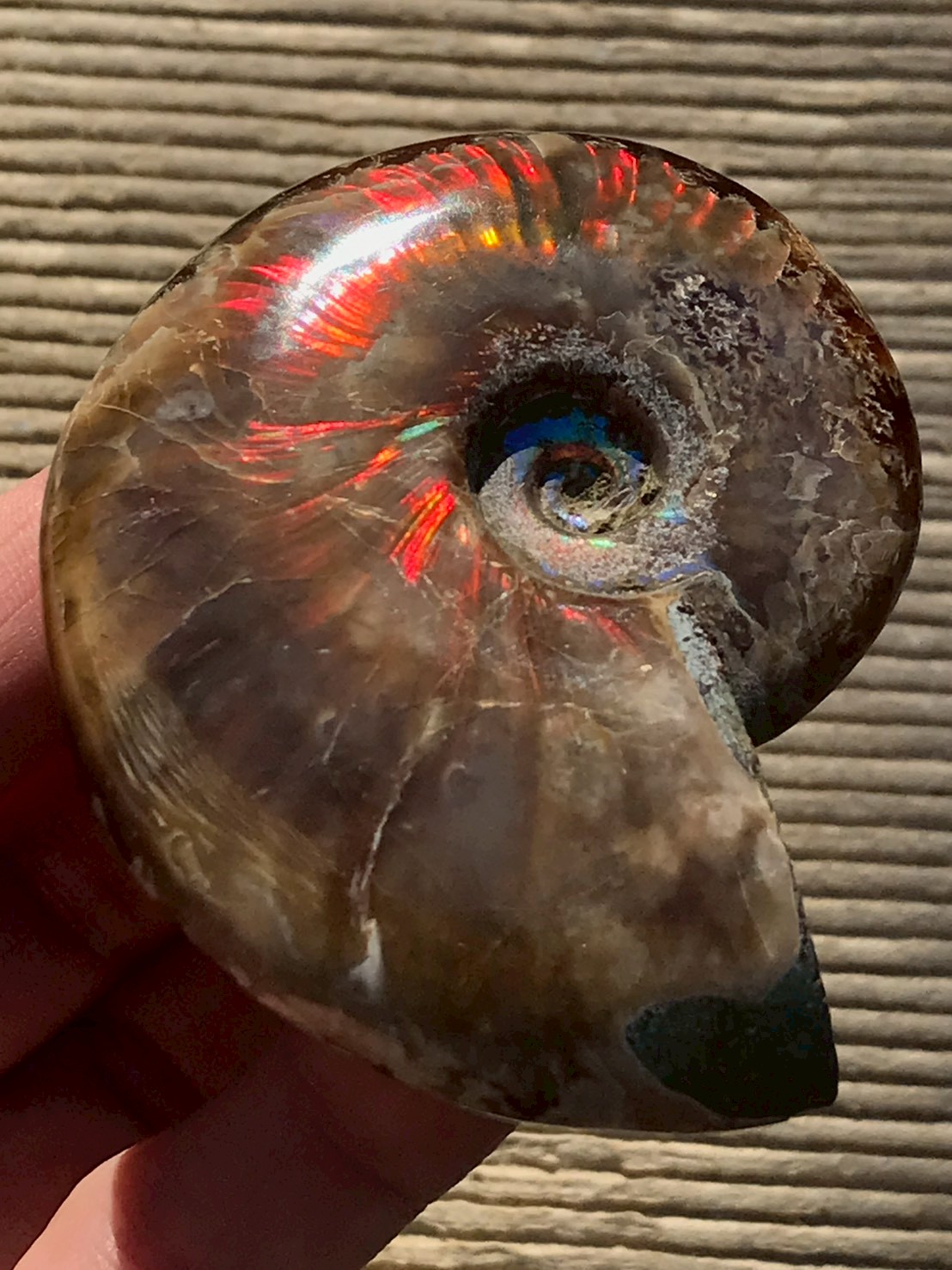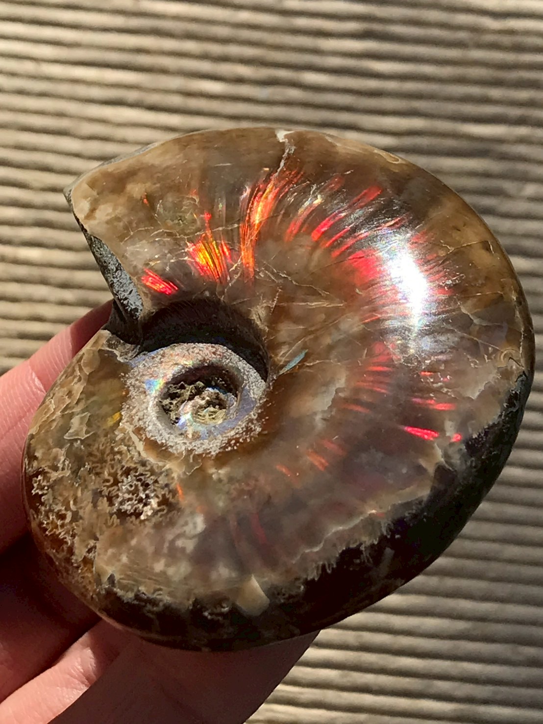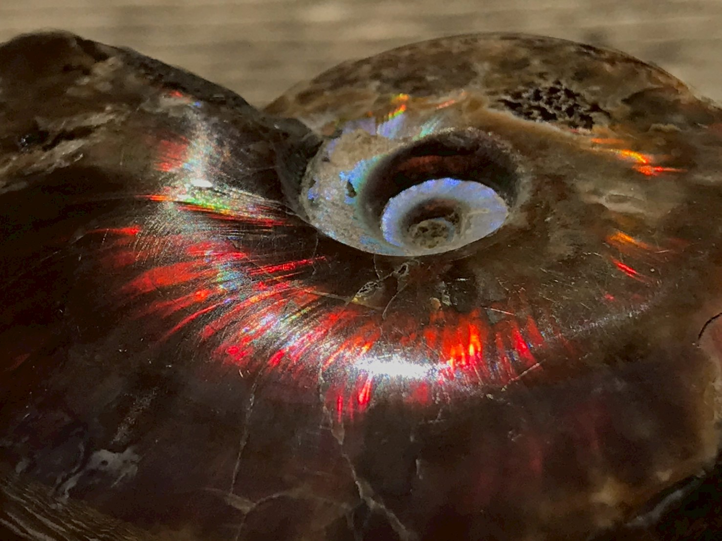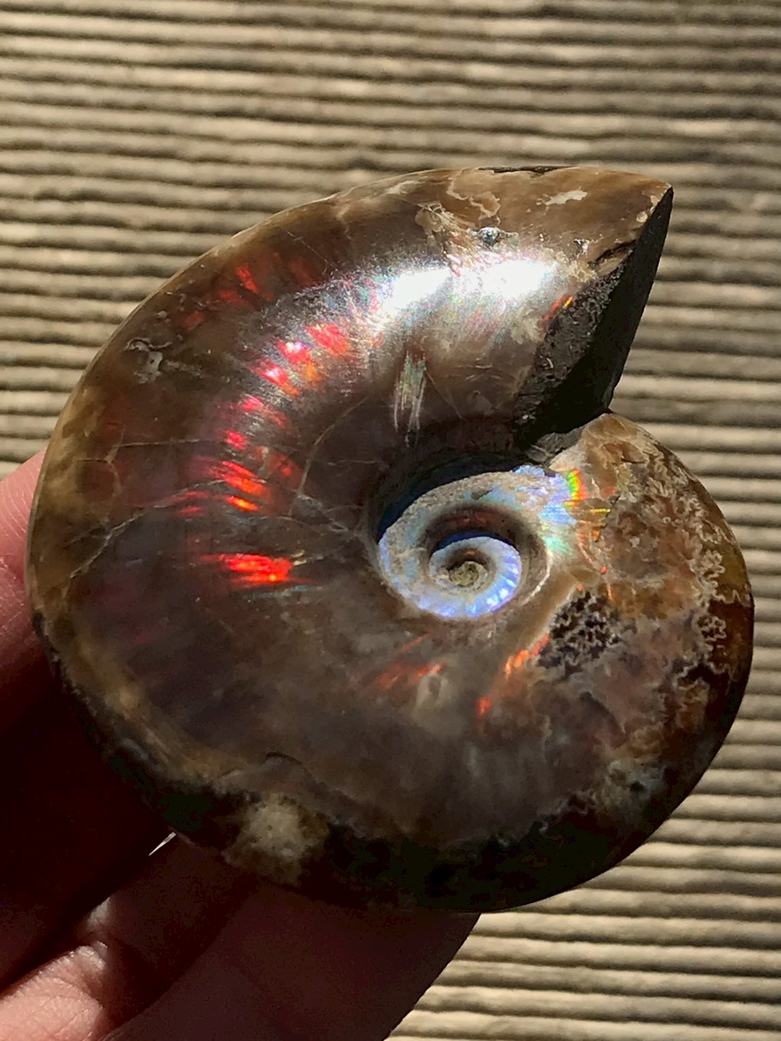 遊色虹色アンモナイト化石赤 クレオニセラス