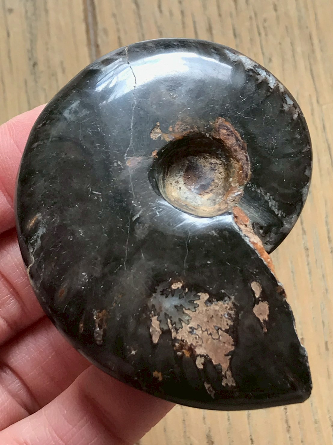 マダガスカル産 ブラックアンモナイト化石 磁力あり クレオニセラス | 虹色南瓜石(にじいろかぼちゃいし)