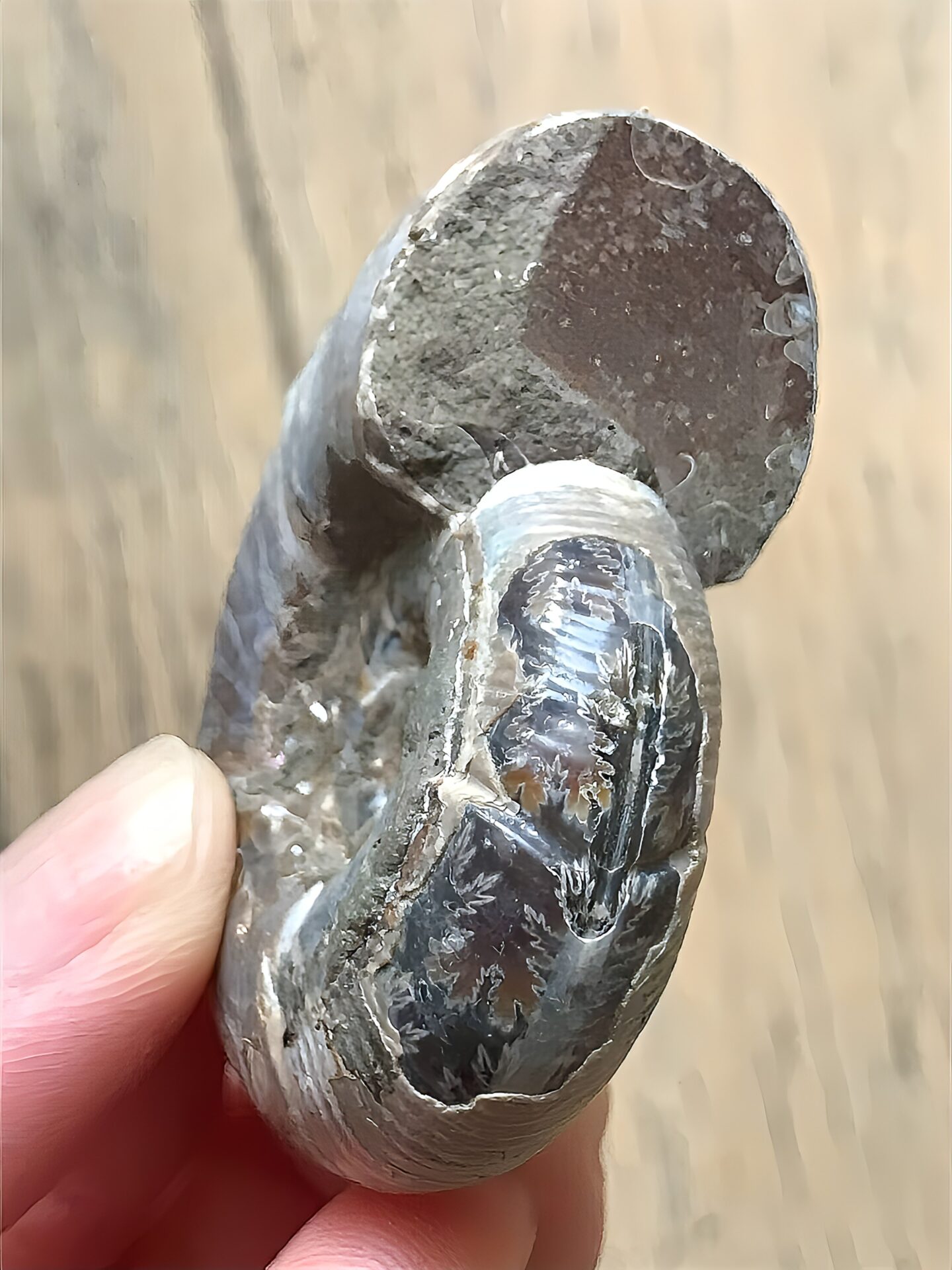 縫合線が見られる光沢研磨済み個体になります。この自然にできたにも関わらず整った縞模様、個体によっては星模様を縫合線と呼びます。