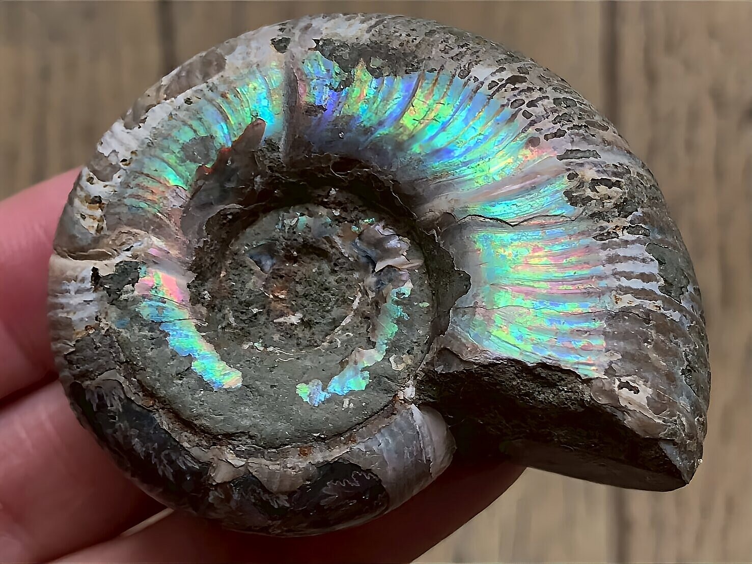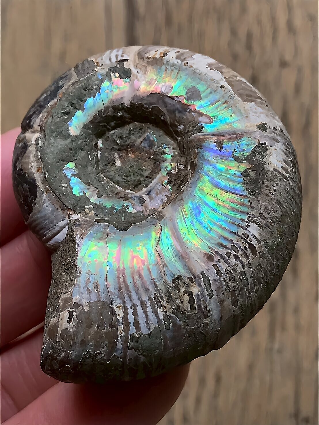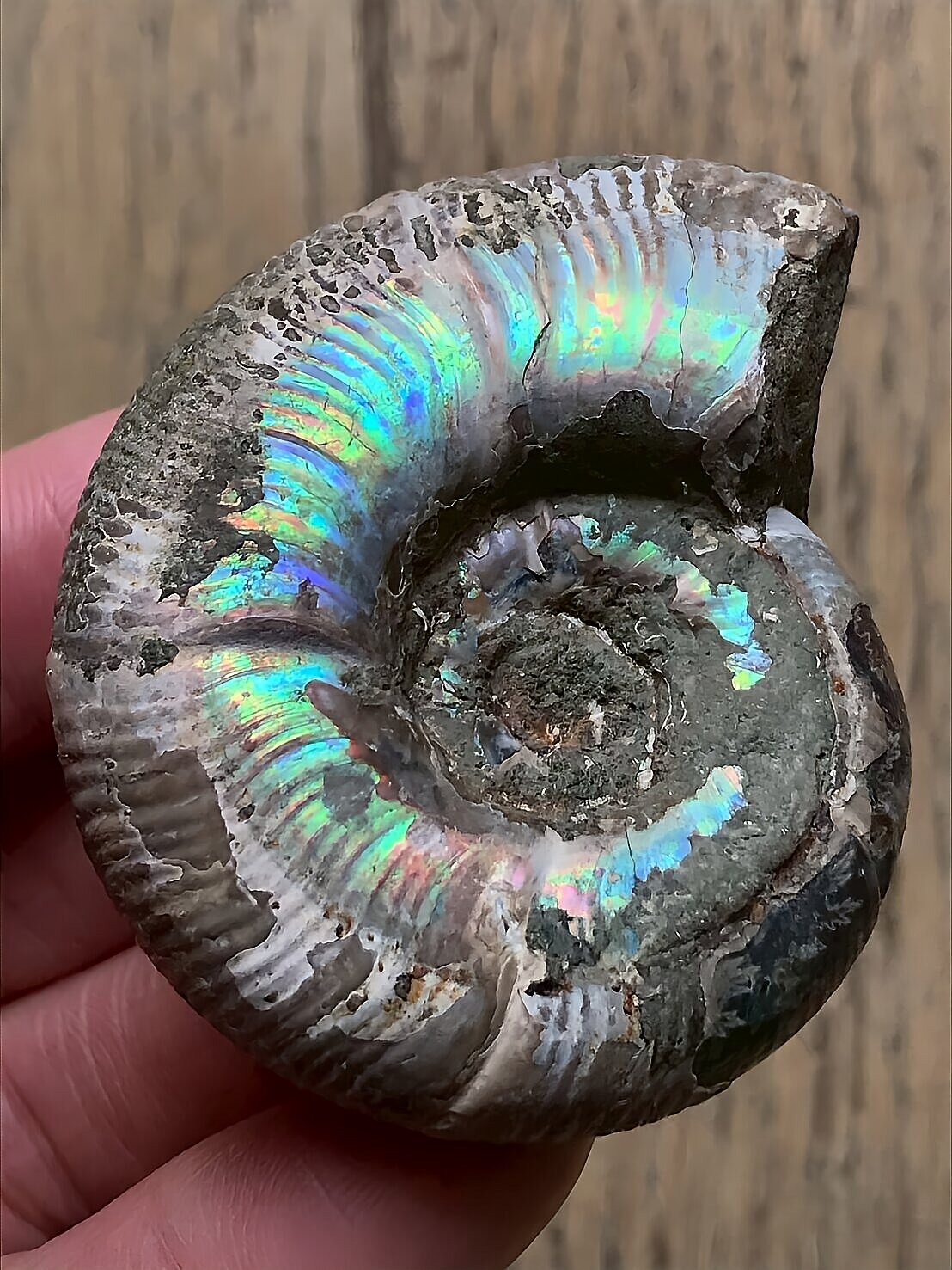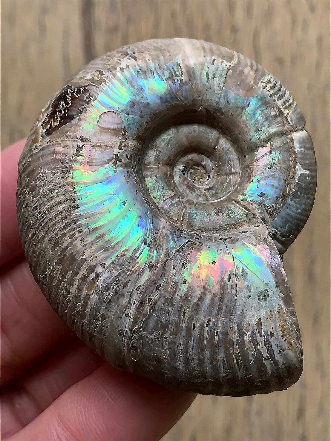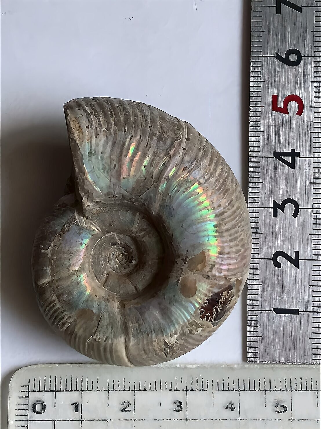 商品名:マダガスカル産 アンモナイト化石プゾシア puzosia quenstedti 、小個体 青ピンク遊色あり
