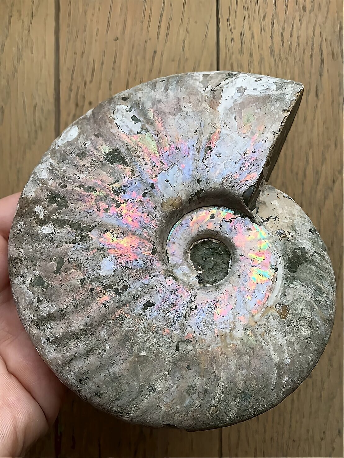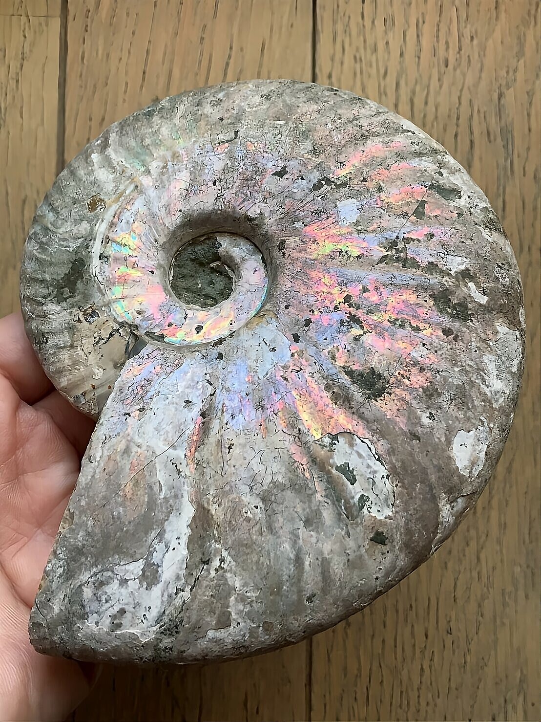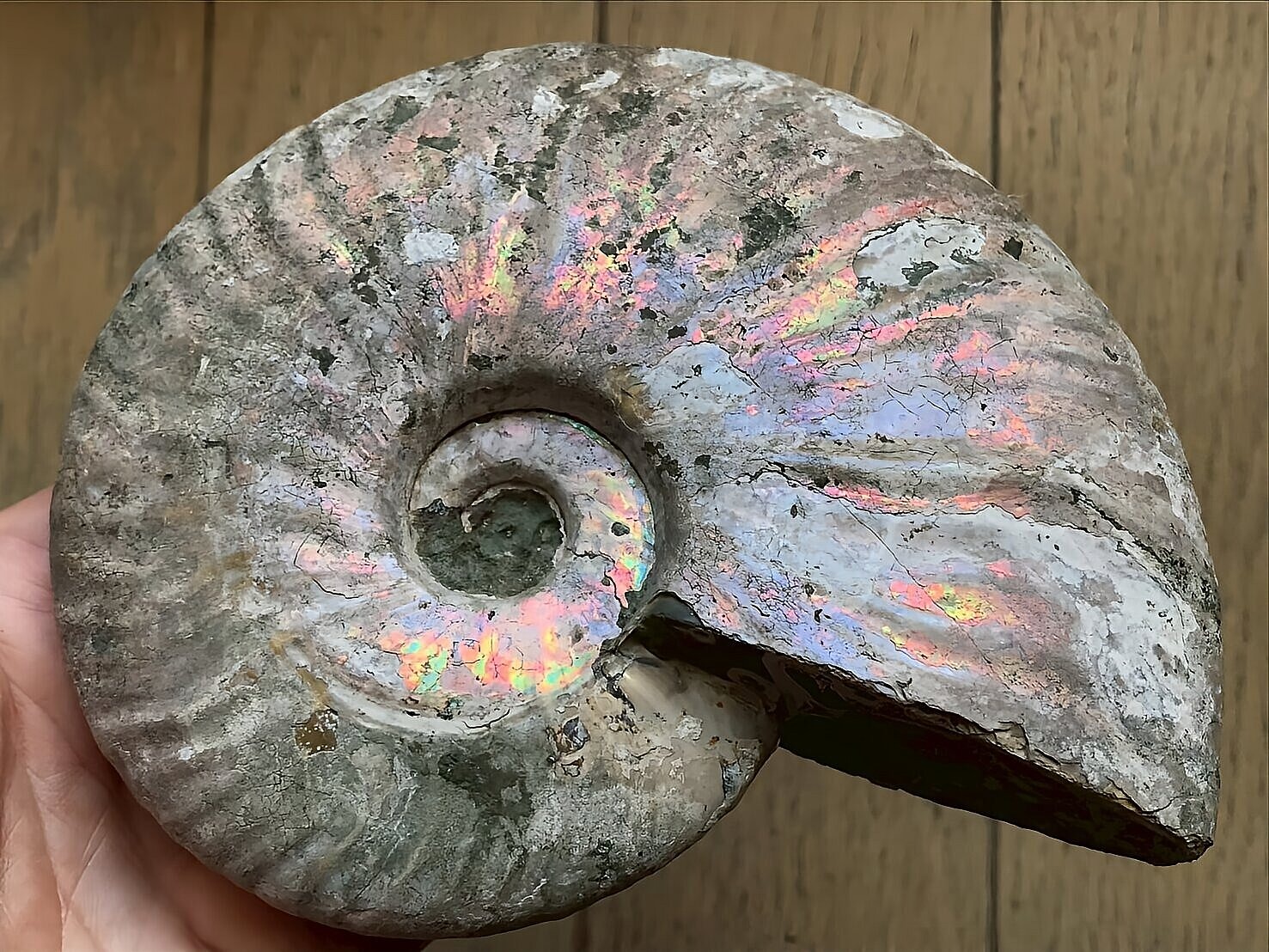 殻表面が日光や照明にあたる角度によって青、緑、紫、ピンク等に輝き飽きがきません。