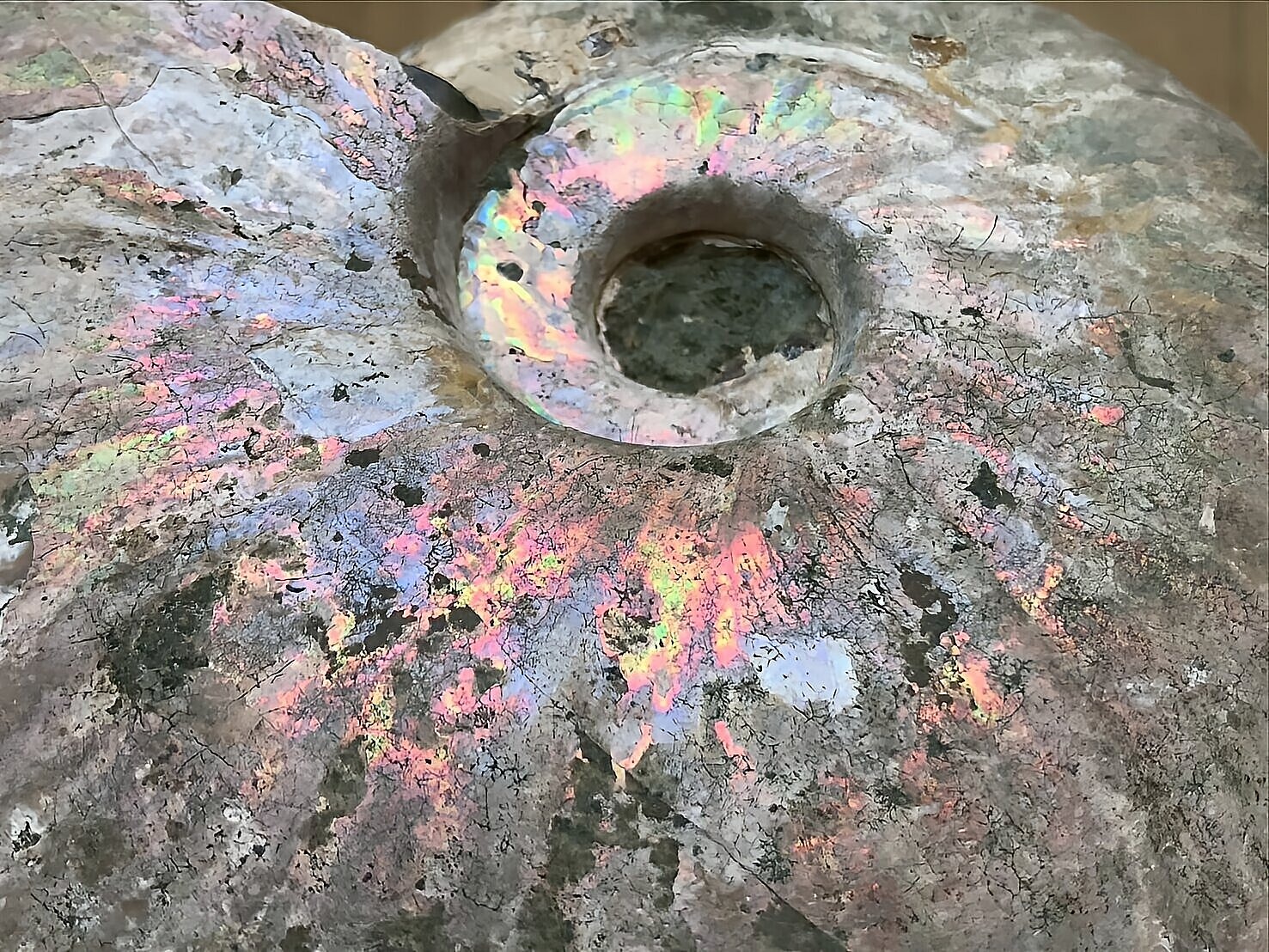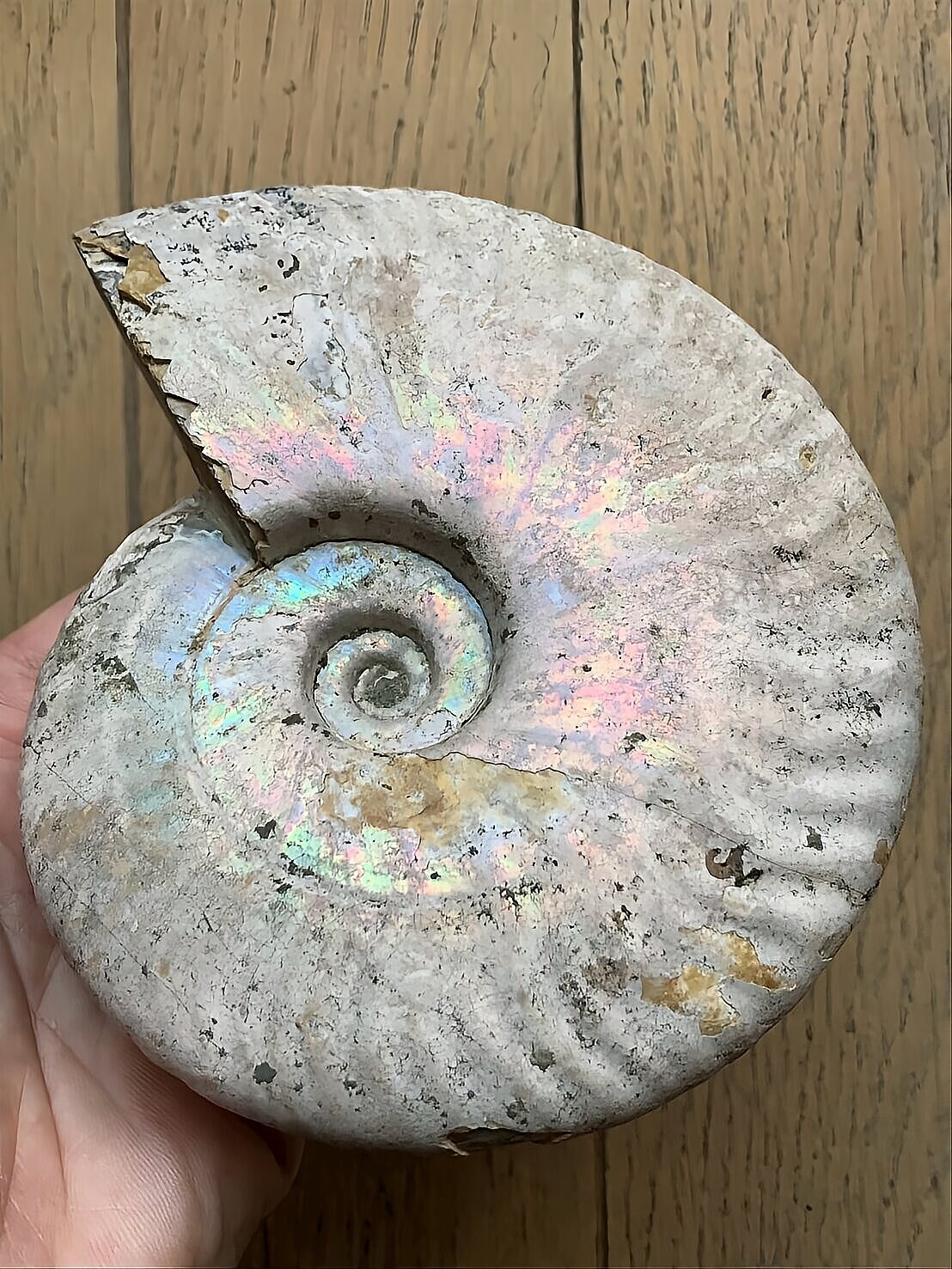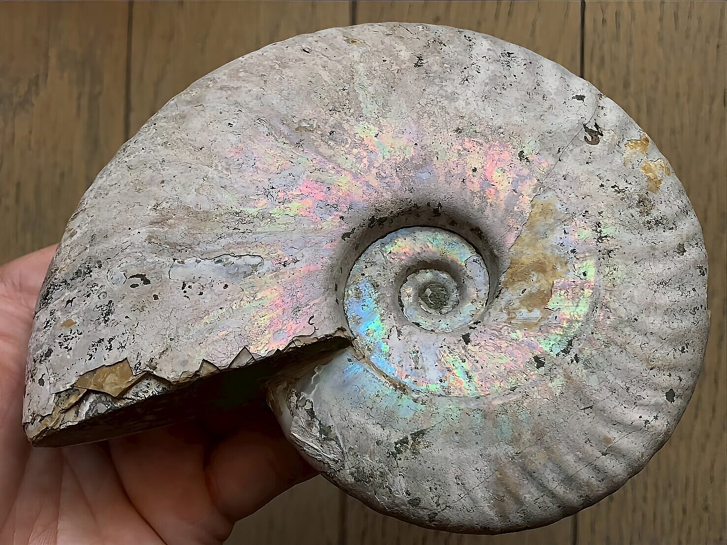 殻表面が日光や照明にあたる角度によって青、緑、紫、ピンク等に輝き飽きがきません。