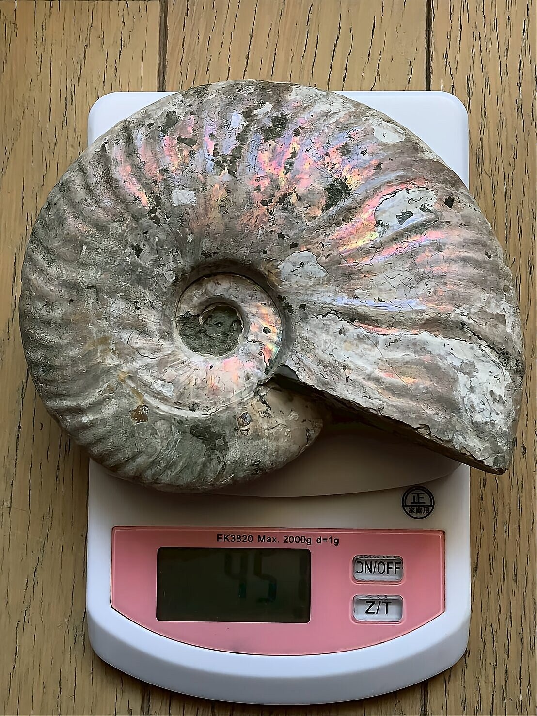 商品名:マダガスカル産 遊色虹色アンモナイト ピンク(クレオニラス)発色